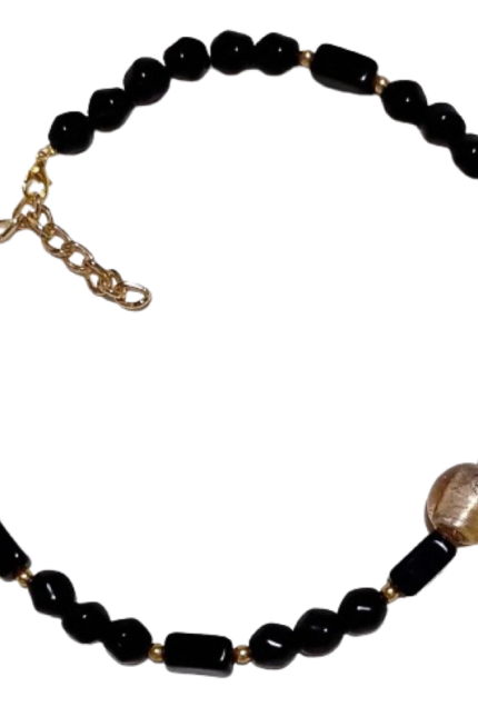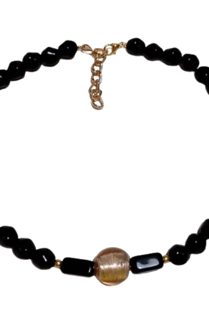 Κολιέ από συνθετικές χάντρες στο χρώμα της μέντας και γυάλινες χάντρες
