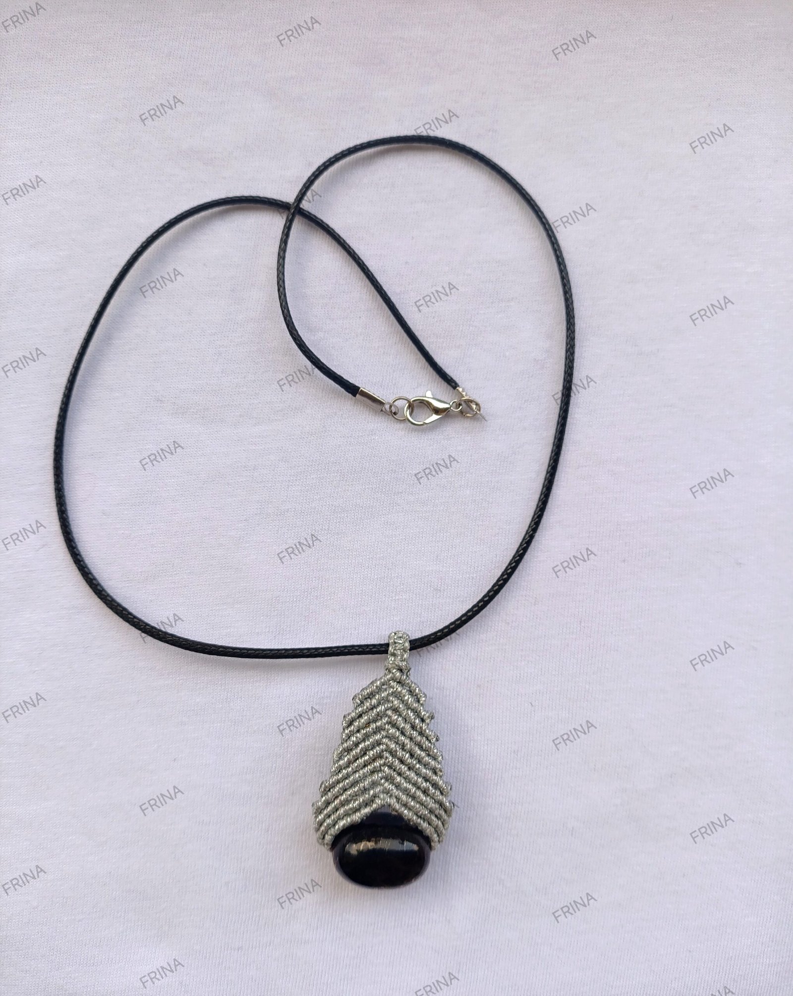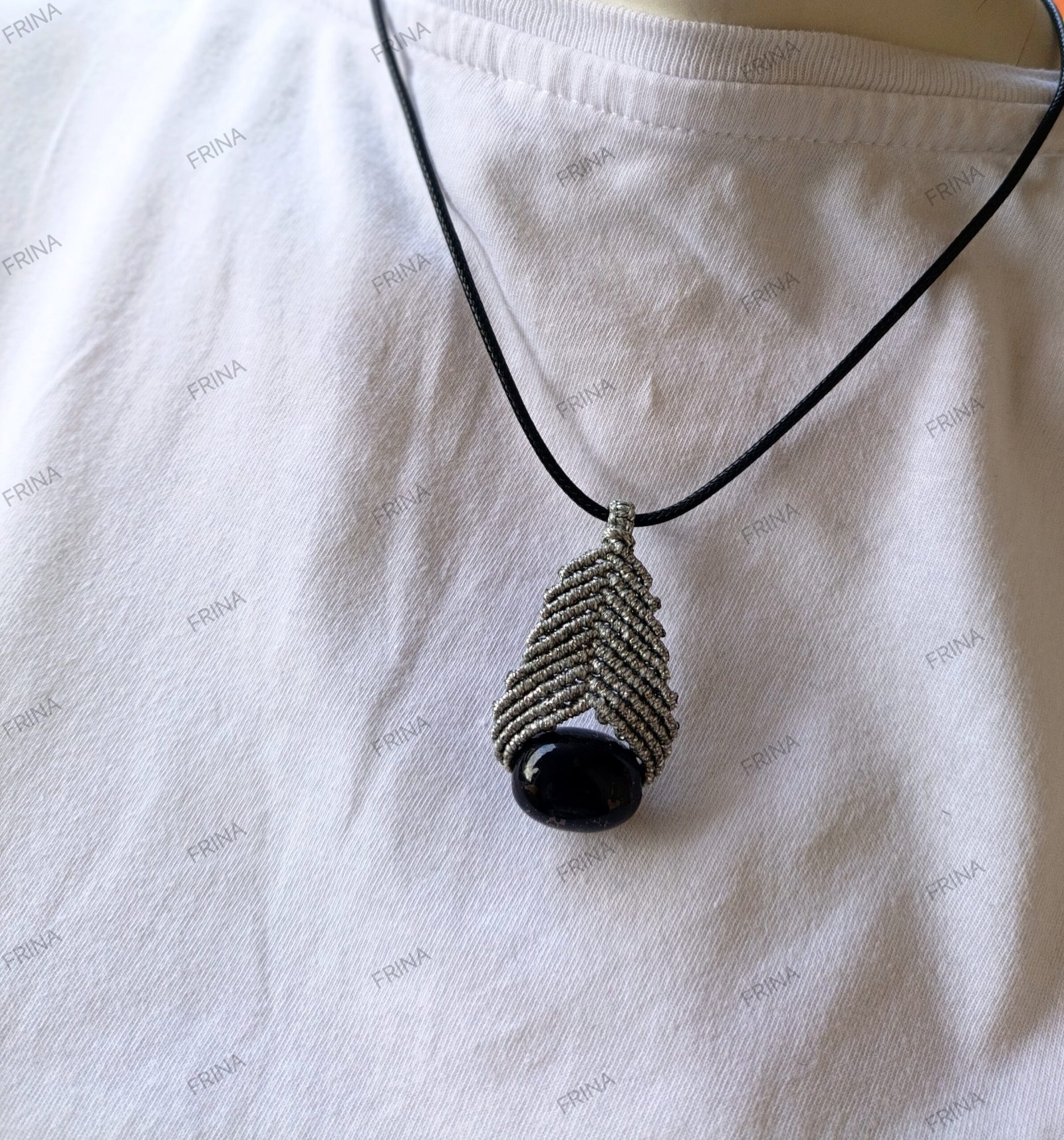 Κορδόνι λαιμού με μακραμέ μενταγιόν ασημί και μαύρη χάντρα