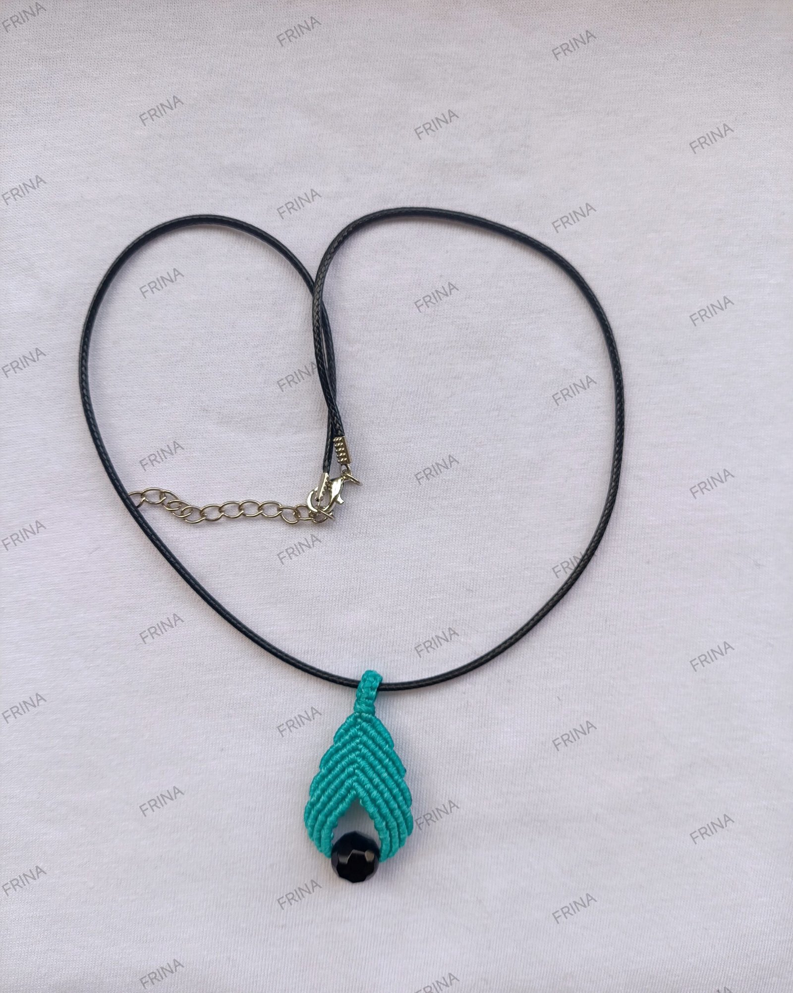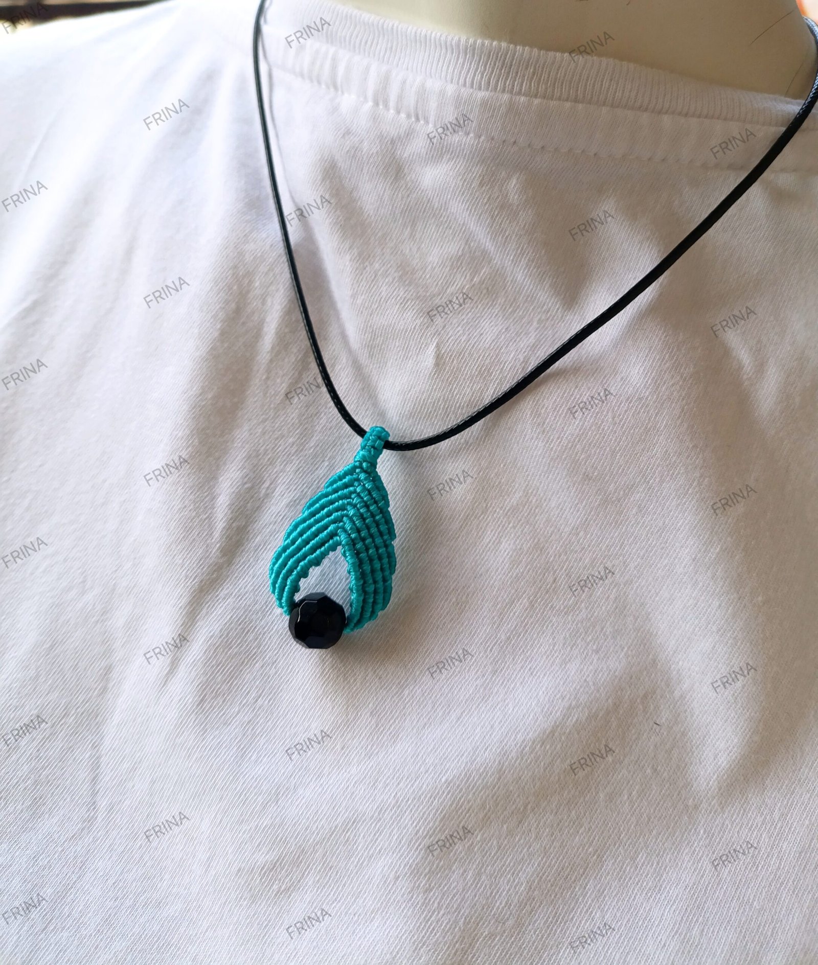 Κορδόνι λαιμού με μακραμέ μενταγιόν βεραμαν και μαύρη χάντρα