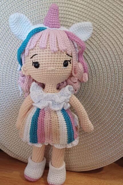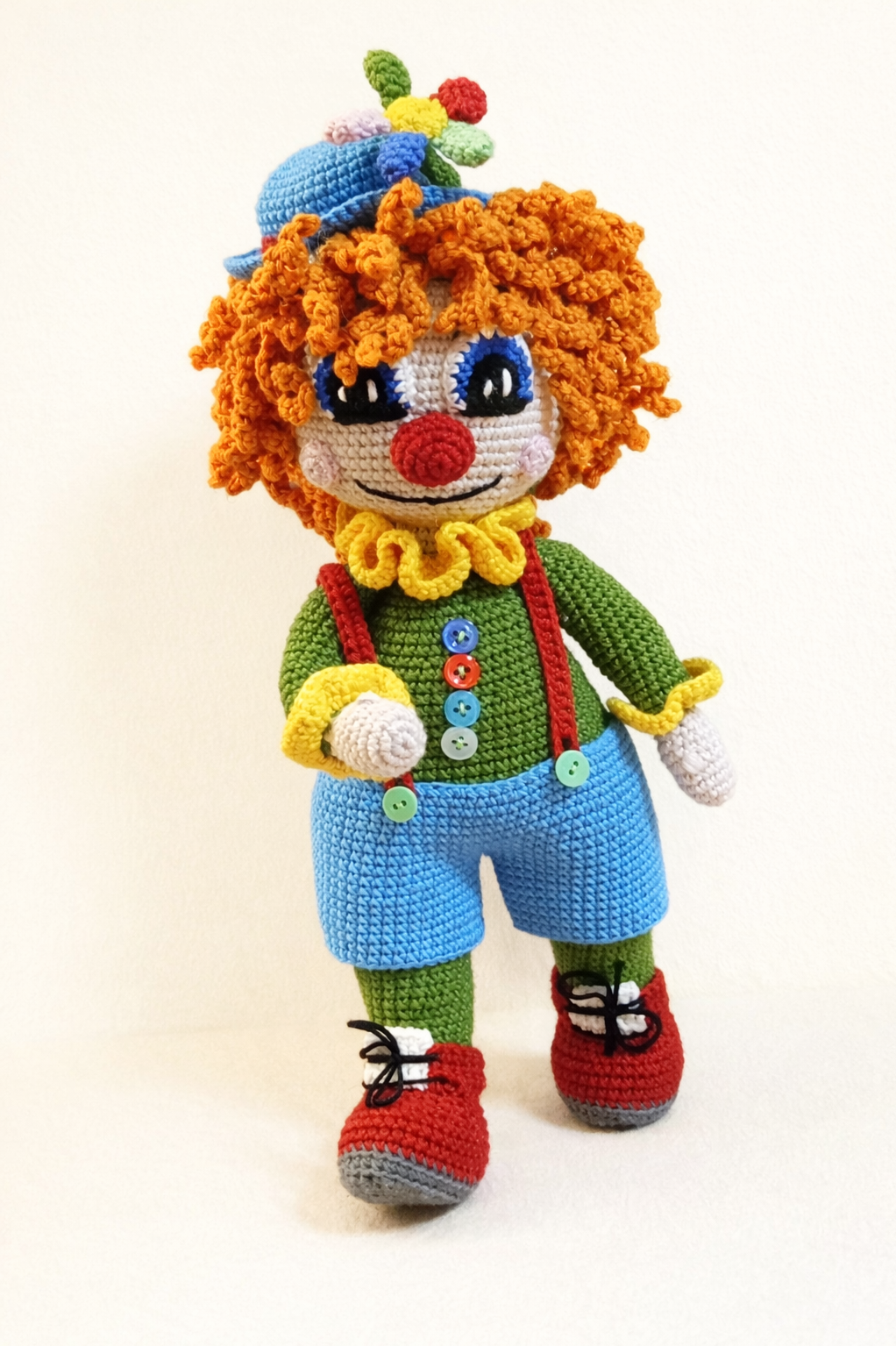Χειροποίητη κούκλα κλόουν ύψους 35εκ. με νήμα κατάλληλο για παιδιά.
