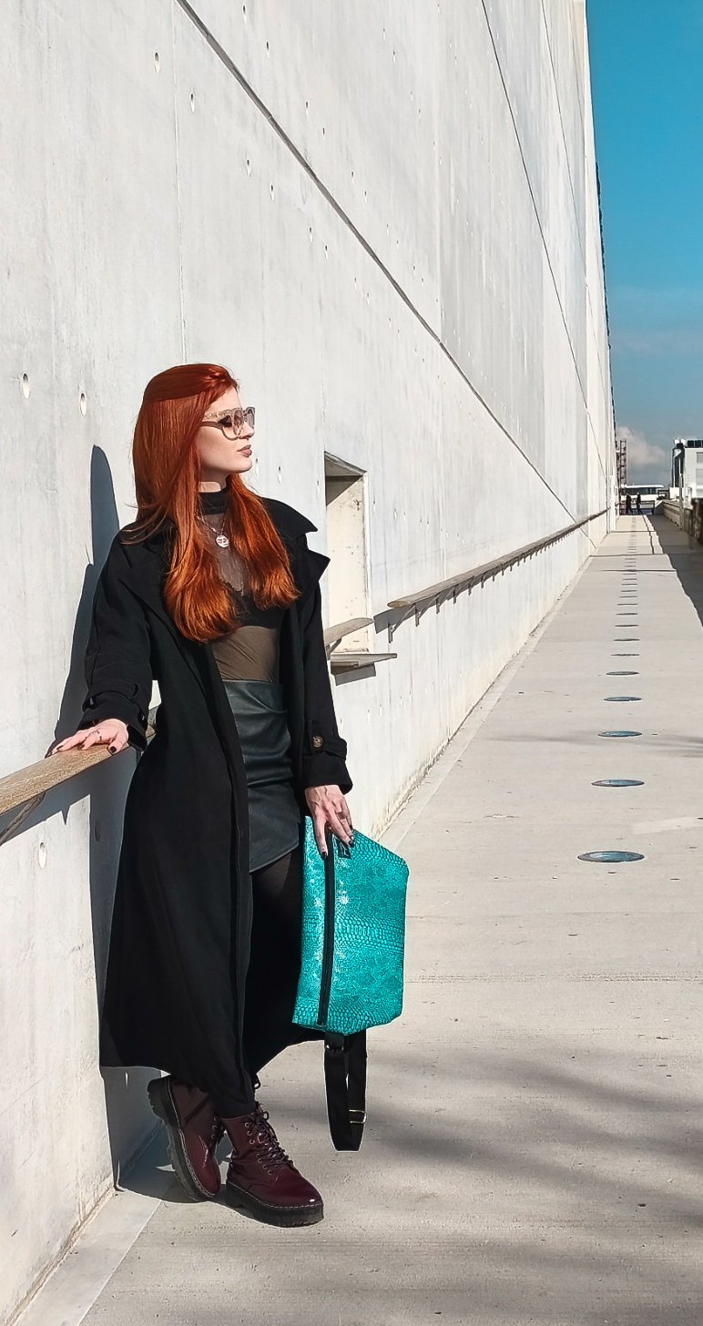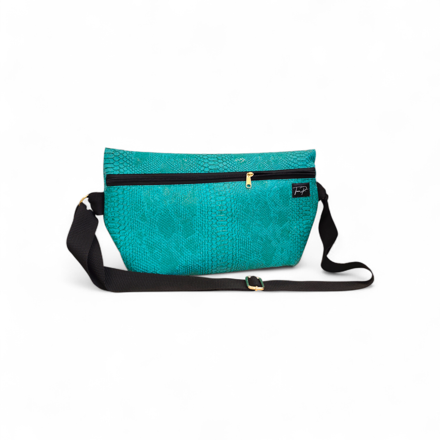 Μοναδική Χειροποίητη τσάντα της συλλογής! Κροκό σε τιρκουάζ χρώμα από faux δέρμα και επένδυση με μαύρη φόδρα. Έχει μήκος 45εκ . Και διαθέτει αποσπώμενο ιμάντα σε μαύρο χρώμα.