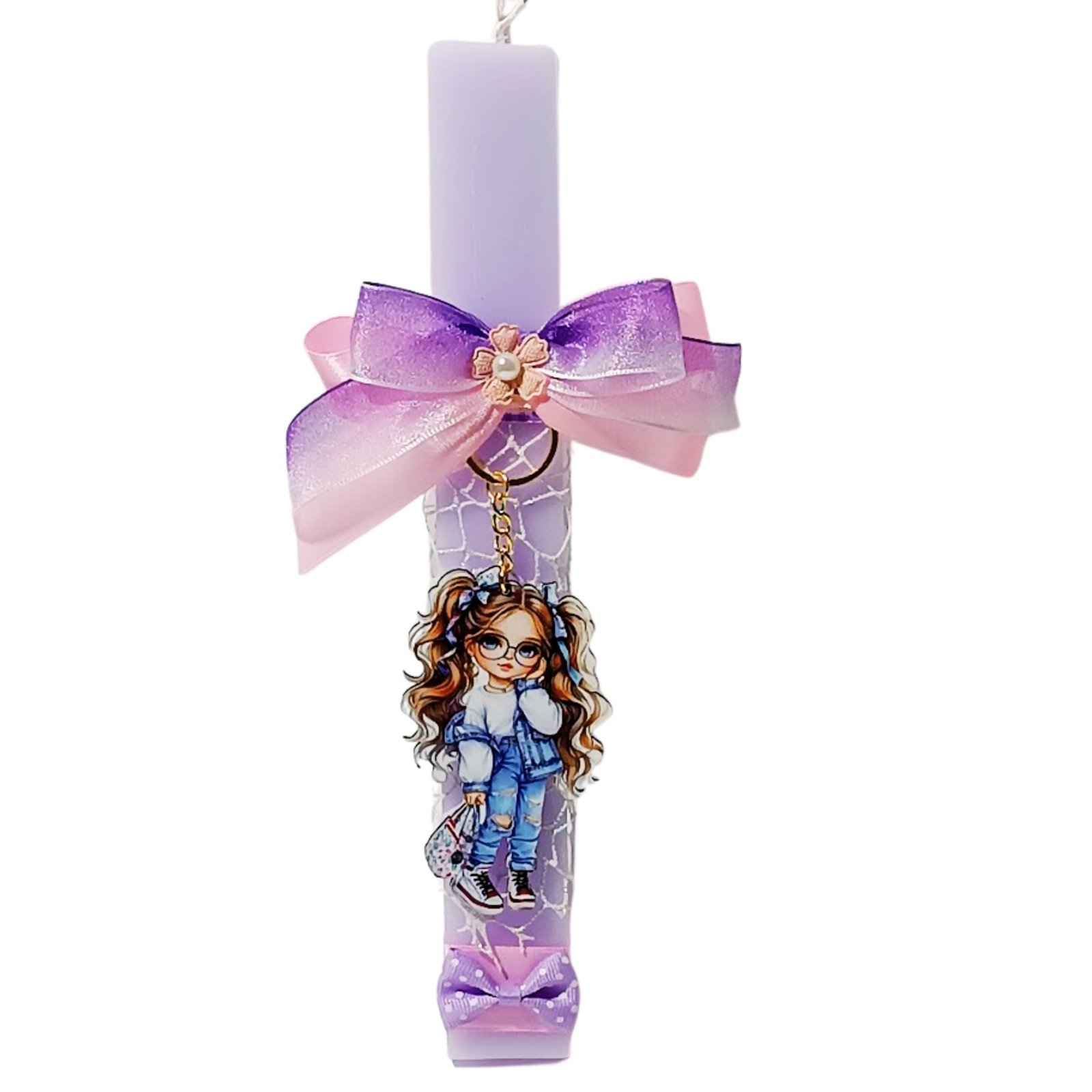 Το μπρελόκ βγαίνει εύκολα από την λαμπάδα η οποία παραμένει στολισμένη. Ιδανική για κορίτσια με δυναμικό χαρακτήρα, χιούμορ και ρομαντισμό!!!!