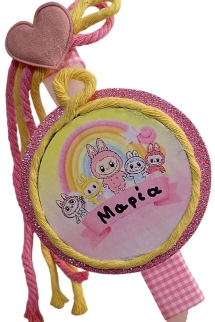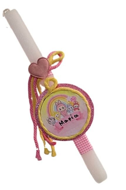 Λαμπάδα πλακέ λευκή με κρεμαστό στοιχείο K POP HUNTRIX και όνομα ( 30 εκ.) σετ με ασορτί HUNGER πόρτας ( 15 εκ )