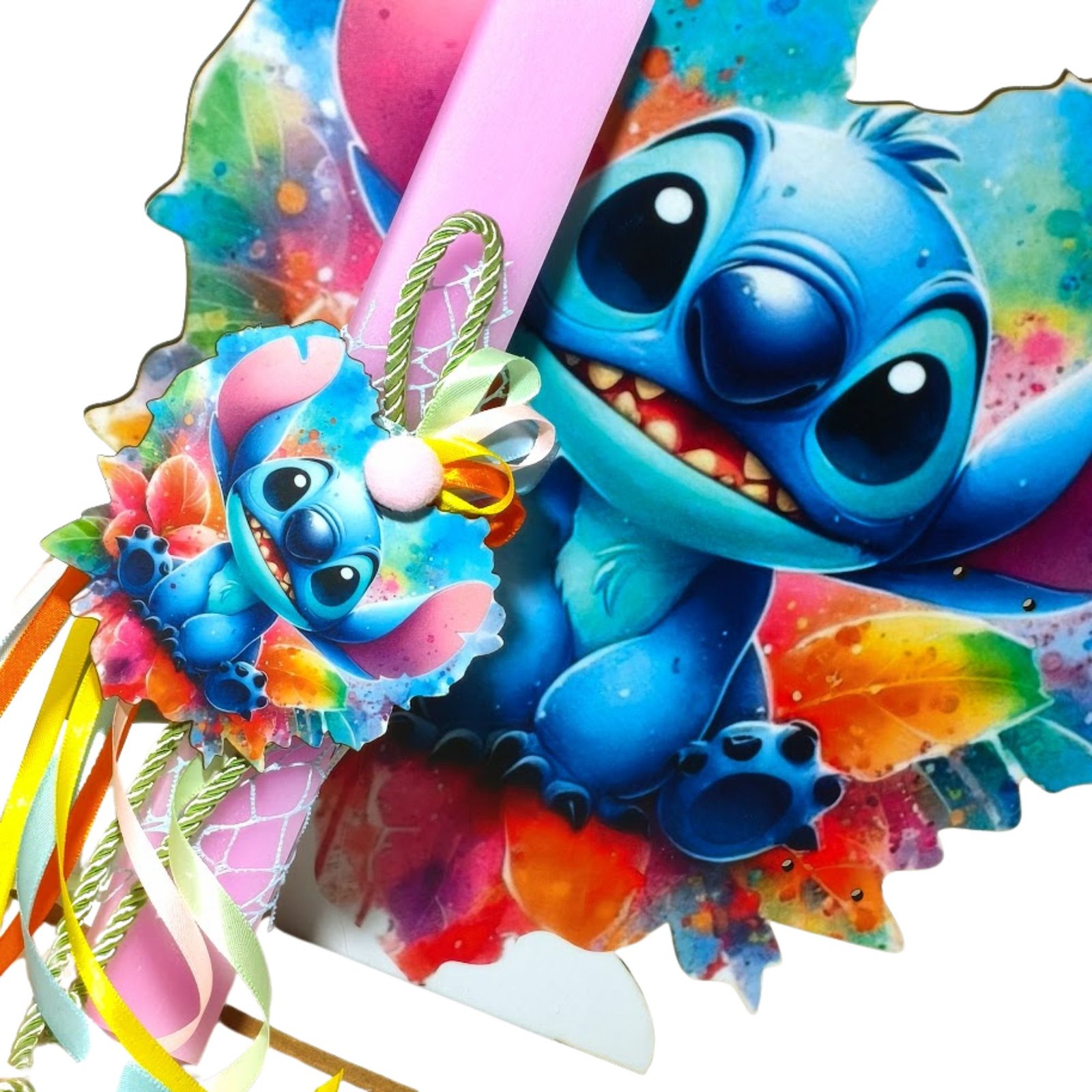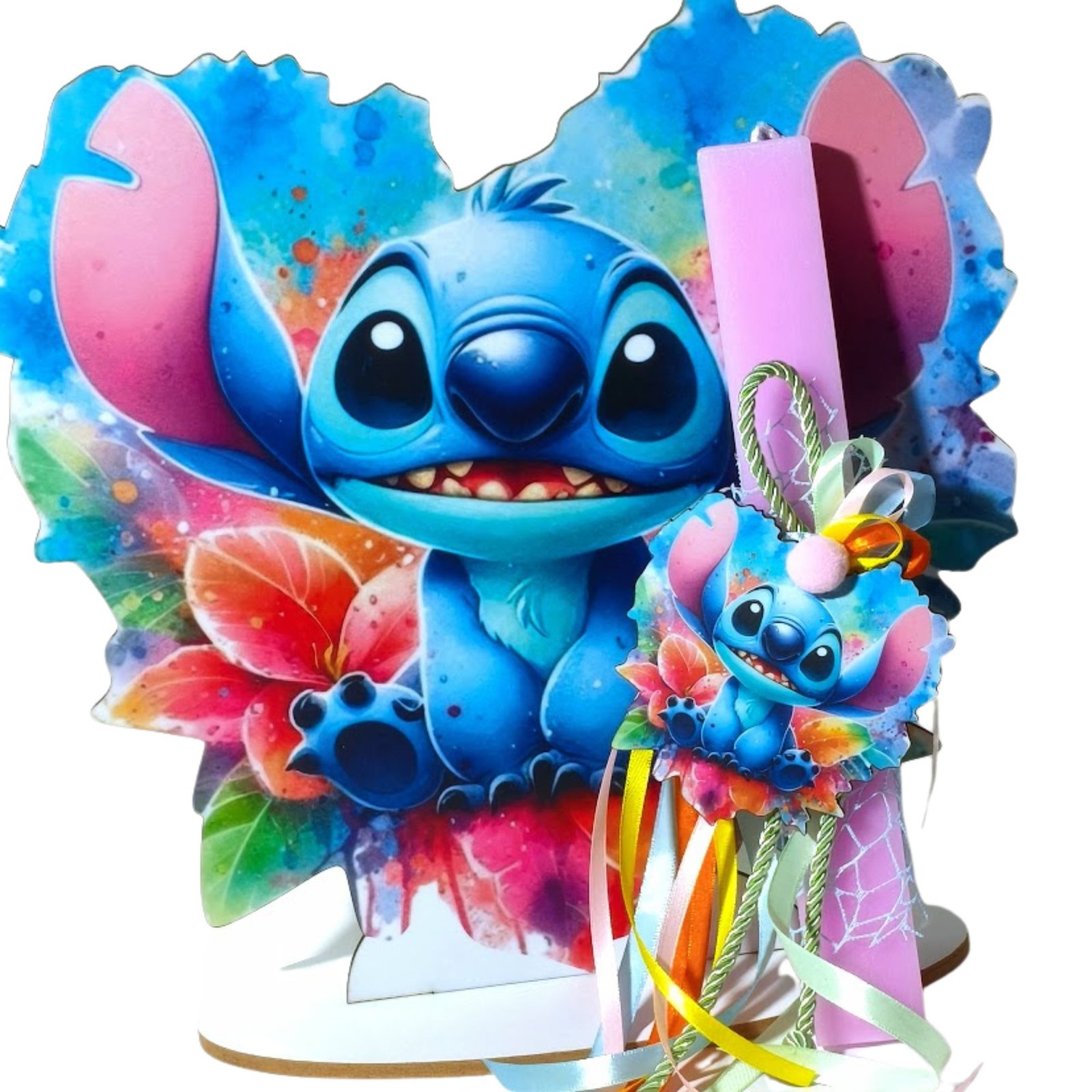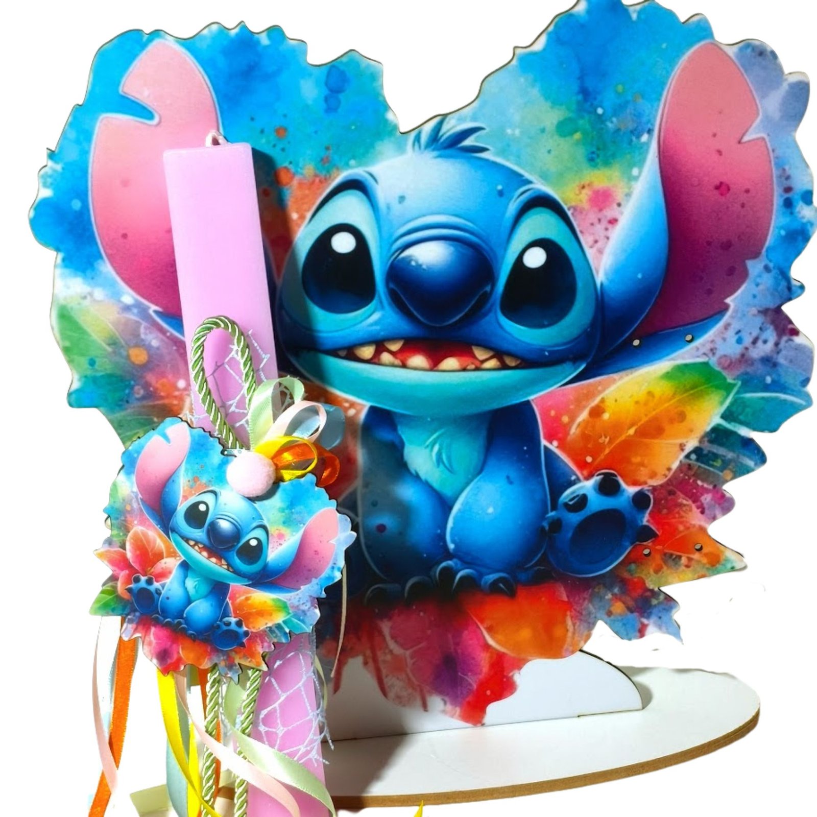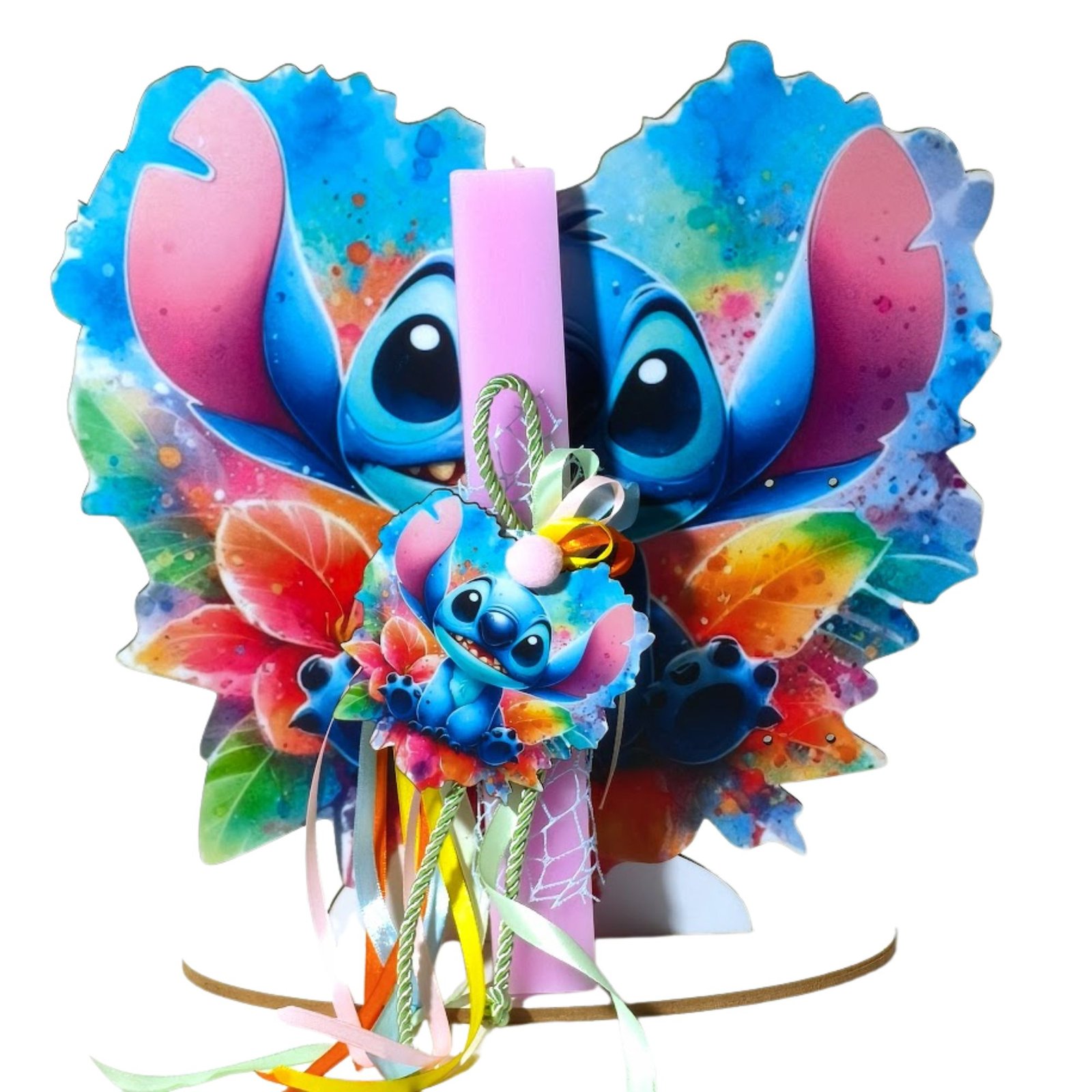 Λαμπάδα Stitch με ξύλινο μαγνητάκι – διακοσμητικό και πλάτη με βάση