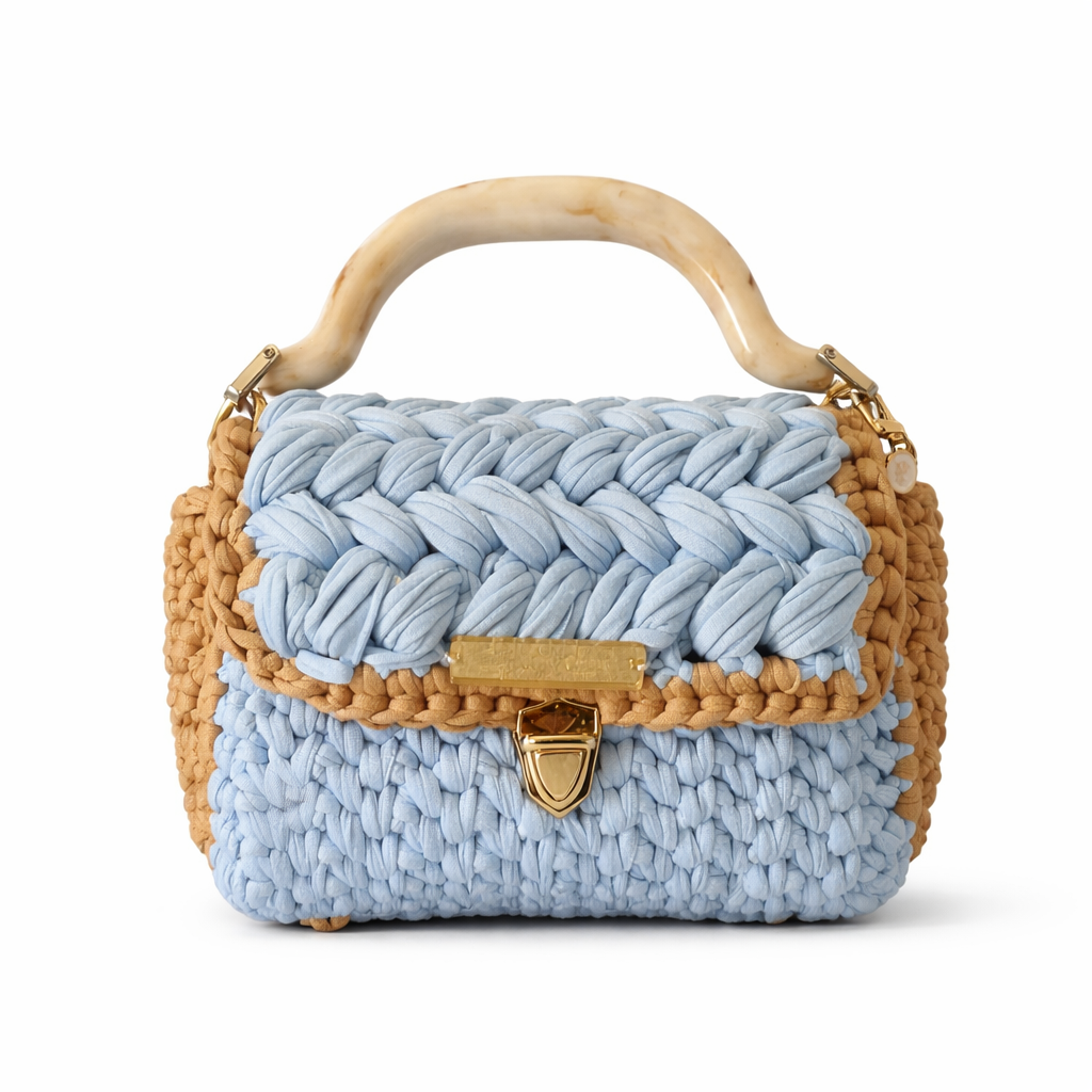 Μια τσάντα που γεννήθηκε μέσα από την τέχνη του χειροποίητου και την αγάπη για τις λεπτομέρειες. Κάθε πλέξη της έχει δημιουργηθεί με φροντίδα, συνθέτοντας ένα μικρό έργο τέχνης που αποπνέει ρομαντισμό και διακριτική πολυτέλεια.