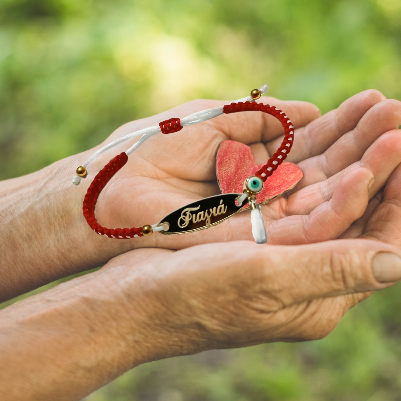 Χειροποίητο βραχιολάκι μαρτάκι για την γιαγιά, μακραμέ σε χρώμα κόκκινο εξωτερικά και άσπρο εσωτερικά, με άσπρη φουντίτσα και ματάκι. Το βραχιολάκι μπορεί να γίνει για γιαγιά, μαμά, θεία, νονά, αδερφή, ξαδέρφη, και φίλη. Το δέσιμο είναι με πλέξη μακραμέ για καλύτερη προσαρμογή στο χέρι σας. Εάν θέλετε κάποια αλλαγή, επικοινωνήστε μαζί μας, ώστε να προσαρμόσουμε το βραχιολάκι όπως το επιθυμείτε!!!