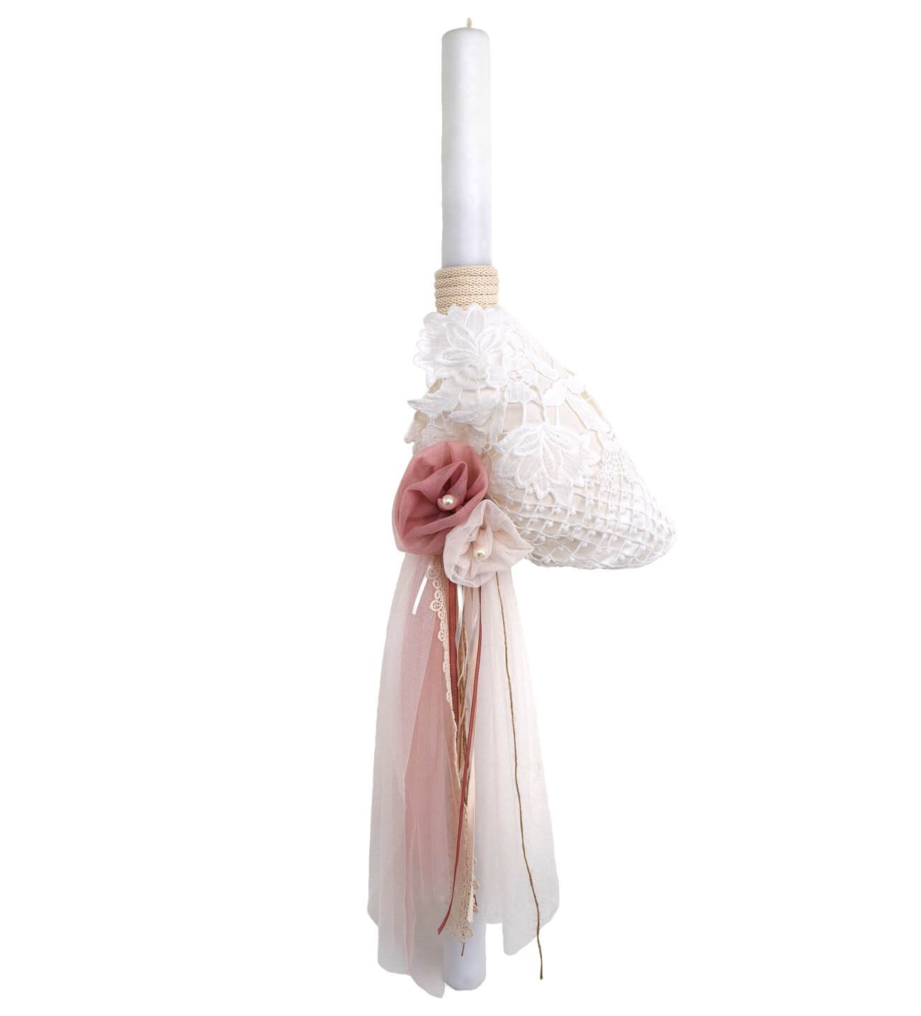 NstNastasia Λαμπάδα Βάπτισης Δαντέλα Λουλούδια