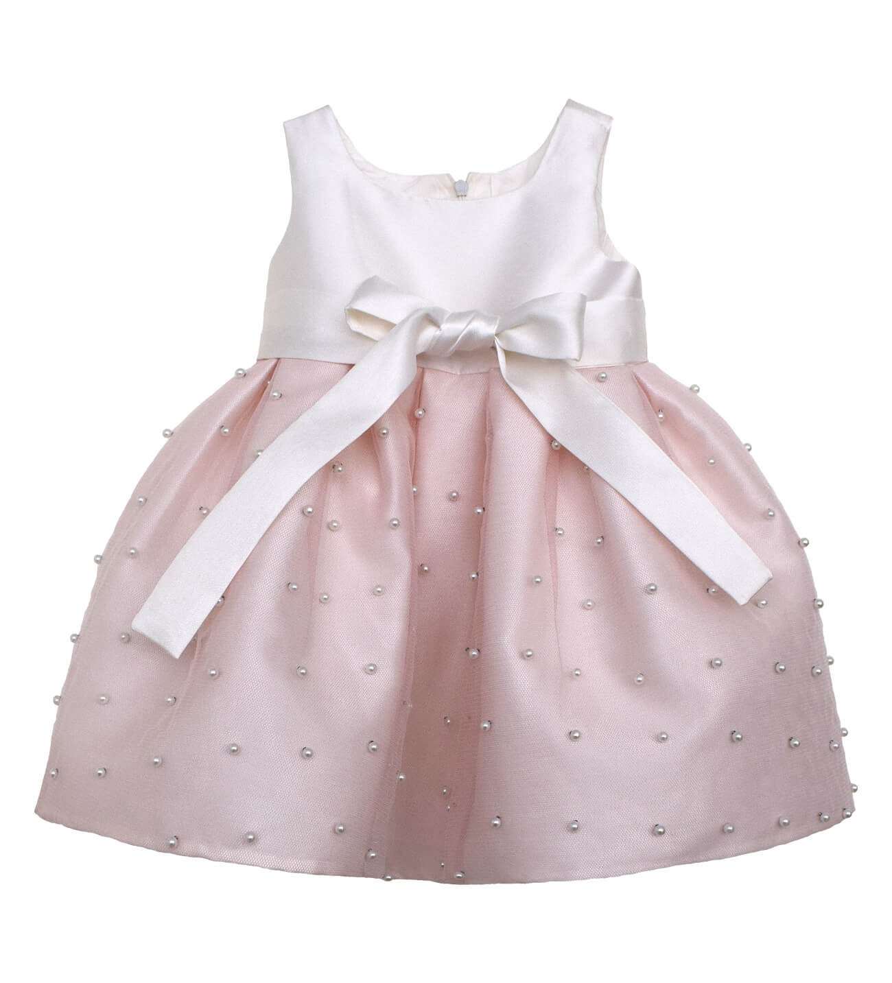 Βαπτιστικό φόρεμα εκρού με μεταξωτό ύφασμα διαγώνιας πλέξης, φούστα επενδυμένη από ροζ τούλι και πέρλες. Βαπτιστικά ρούχα, ελληνικής ραφής, υψηλής ποιότητας. Παράγονται στον επαγγελματικό μας χώρο κατά παραγγελία στα μέτρα του παιδιού.