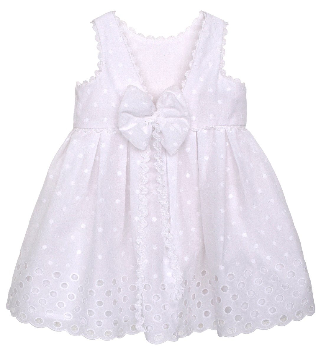 Βαπτιστικά ρούχα, ελληνικής ραφής, υψηλής ποιότητας. Παράγονται στον επαγγελματικό μας χώρο κατά παραγγελία στα μέτρα του παιδιού. Βαπτιστικό φόρεμα από πουά ελβετικό μπροντερύ.