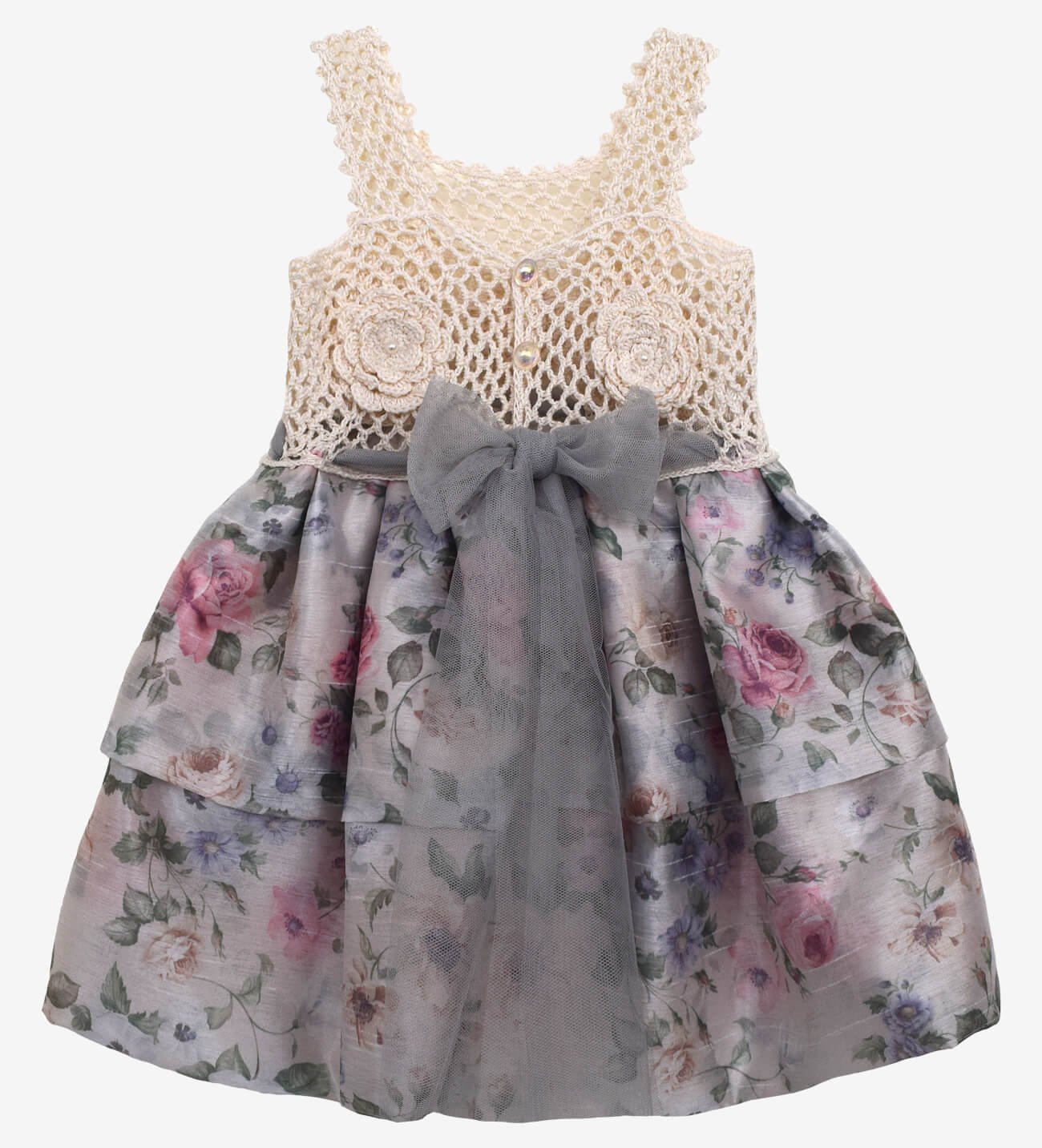 Βαπτιστικό φόρεμα από χειροποίητο εκρού μπούστο από βαμβακερό νήμα, φούστα από μεταξωτό φλοράλ ύφασμα και λαδί τούλινη ζώνη. Βαπτιστικά ρούχα, ελληνικής ραφής, υψηλής ποιότητας. Παράγονται στον επαγγελματικό μας χώρο κατά παραγγελία στα μέτρα του παιδιού.