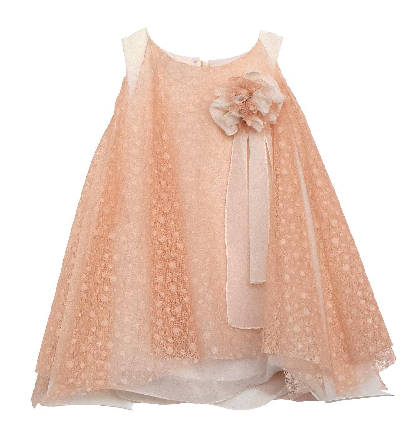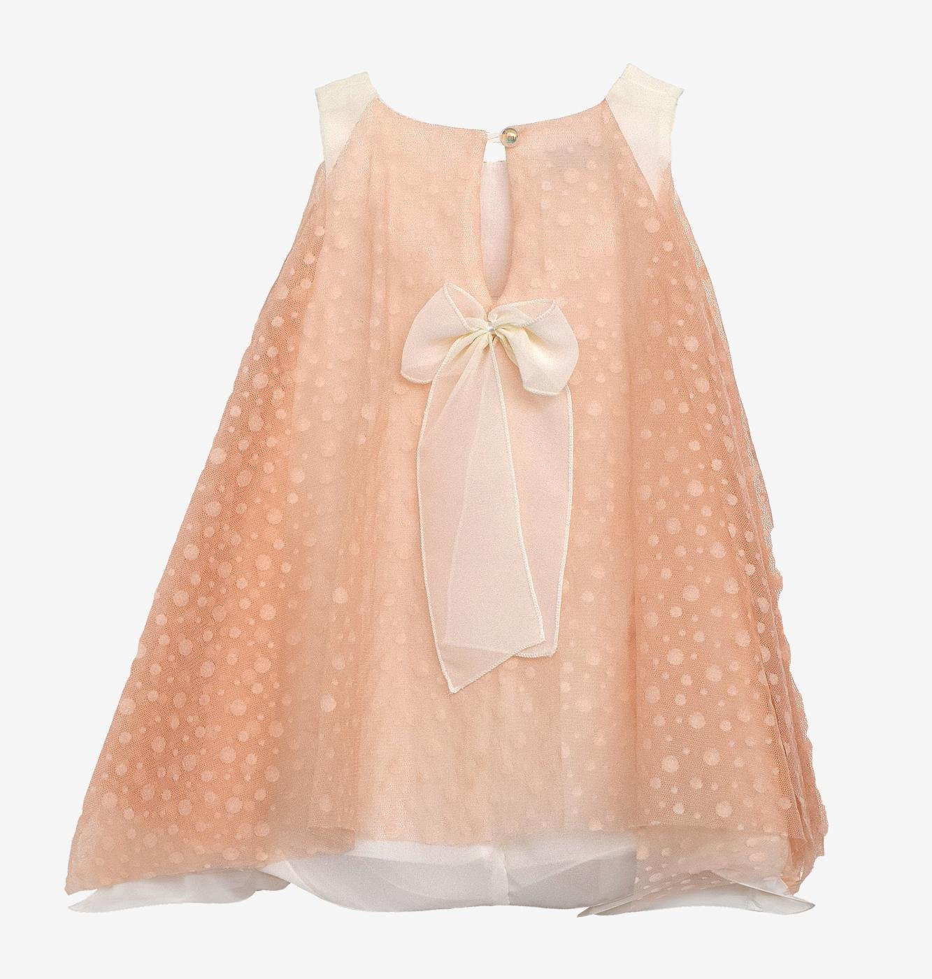 Βαπτιστικά ρούχα, ελληνικής ραφής, υψηλής ποιότητας. Παράγονται στον επαγγελματικό μας χώρο κατά παραγγελία στα μέτρα του παιδιού. Βαπτιστικό φόρεμα από εκρού οργαντίνα, ροζ πουά τούλι και χειροποίητη μπουτονιέρα στο πέτο.