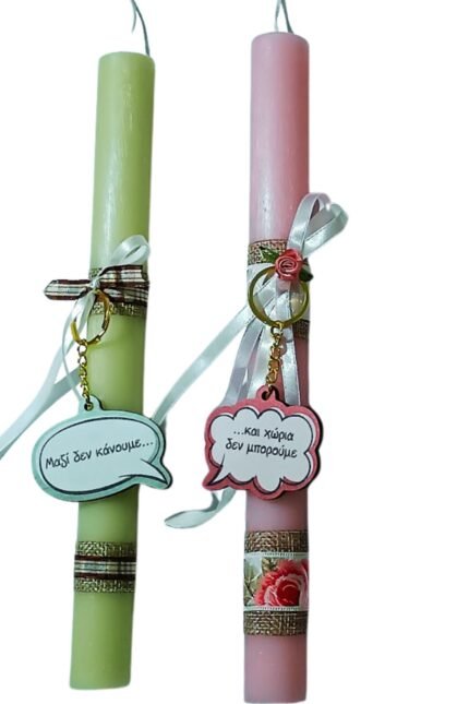 Αποτελεί ιδανικό δώρο Πάσχα για ζευγάρι κάθε ηλικίας με βασικό προσόν το χιούμορ, το πάθος για την ζωή και την αγάπη, διακριτικά διακοσμημένες λαμπάδες και χρηστικά μπρελόκ.