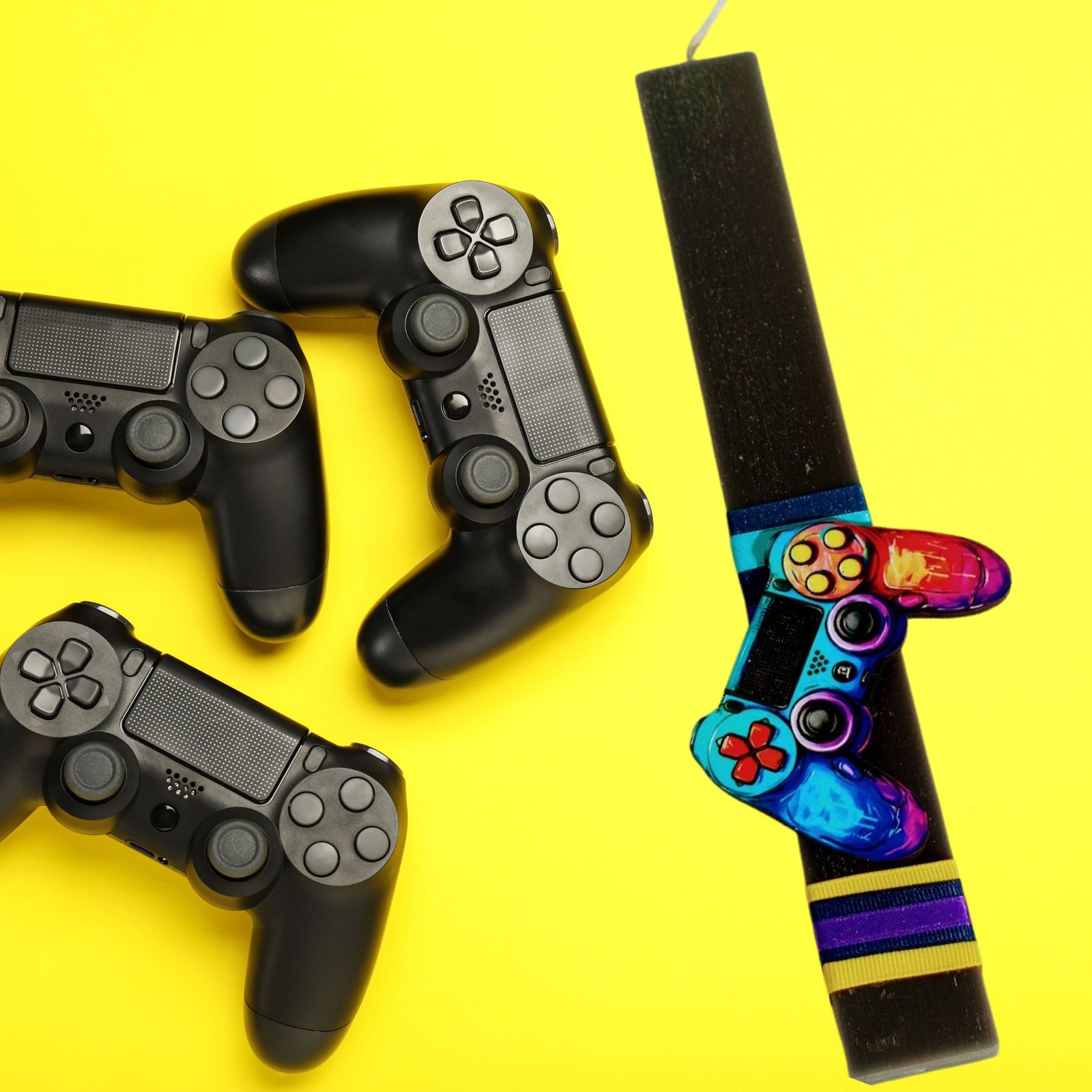 Χειροποίητη πασχαλινή λαμπάδα εμπνευσμένη από τον κόσμο των παιχνιδιών και των χρωμάτων των οθονών.