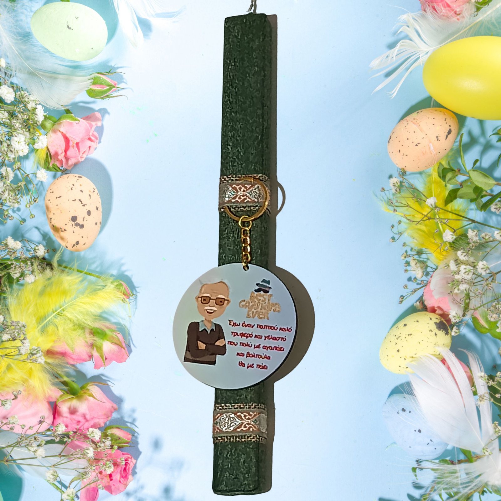 Πασχαλινή λαμπάδα για παππού με μπρελόκ