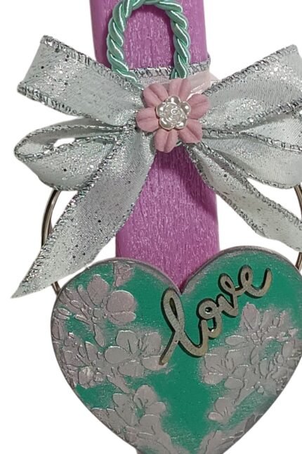 Η λαμπάδα είναι αρωματική σε βεραμάν χρώμα με διακοσμητικό – μαγνητάκι και διακοσμημένη με ροζ κορδόνι και λουλουδάκια.