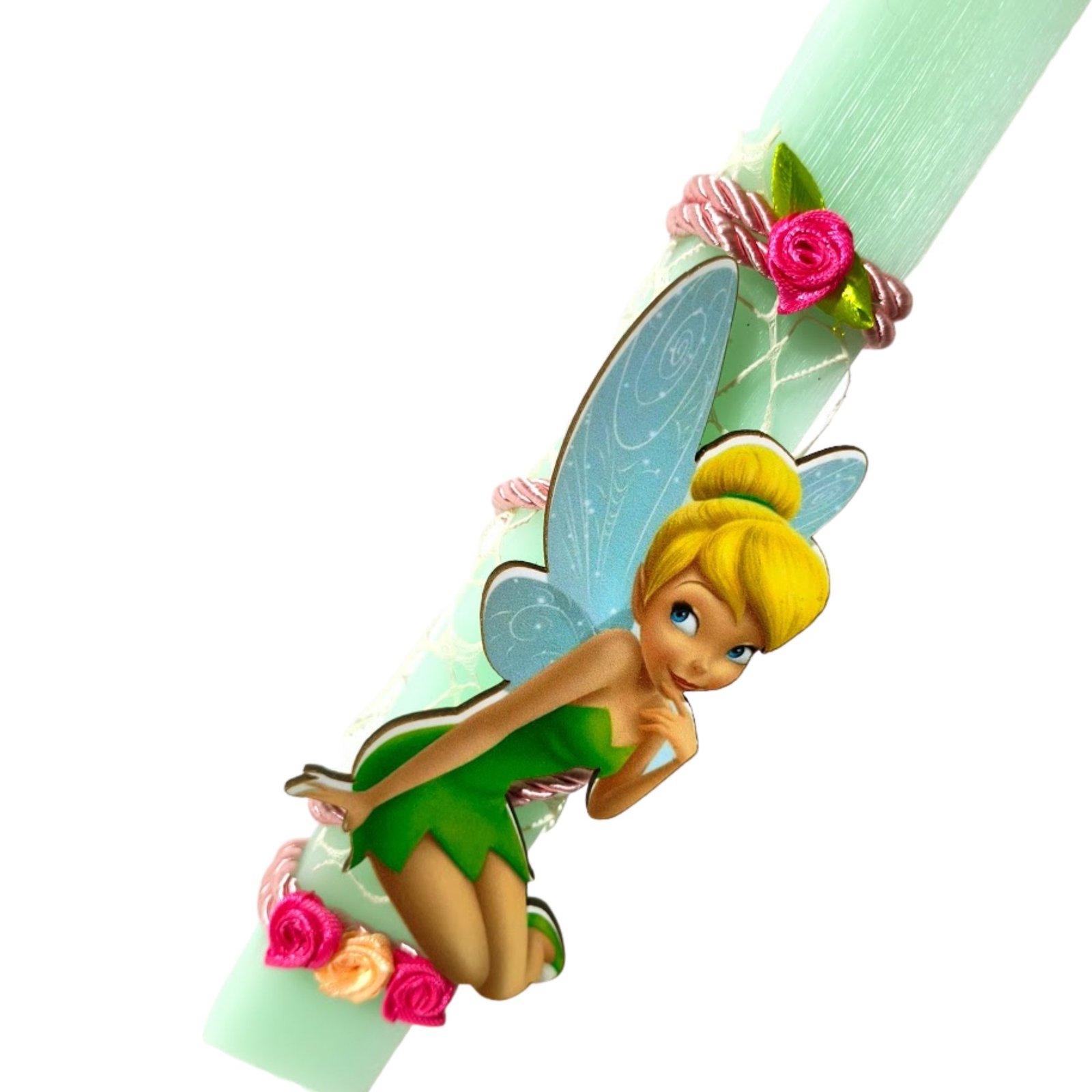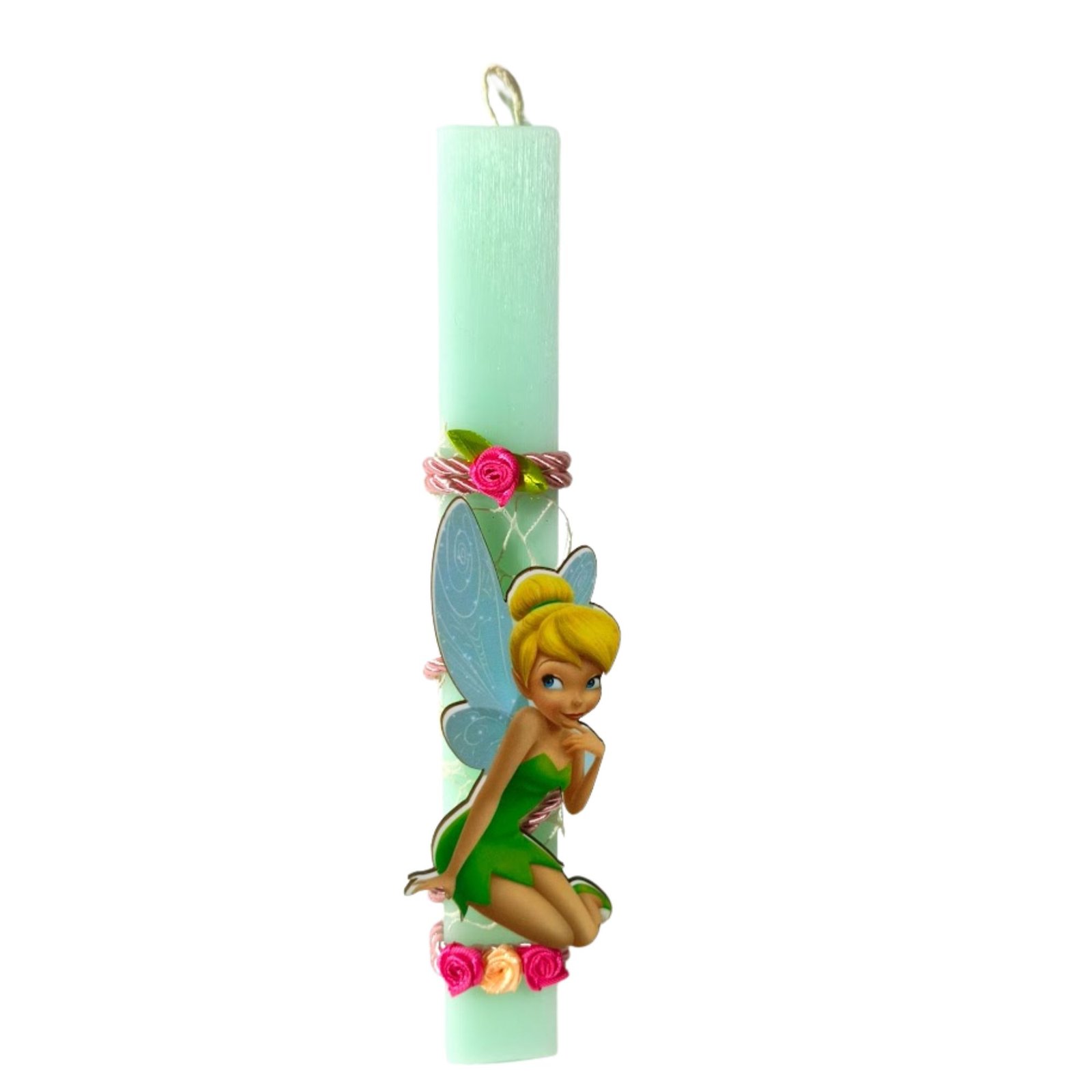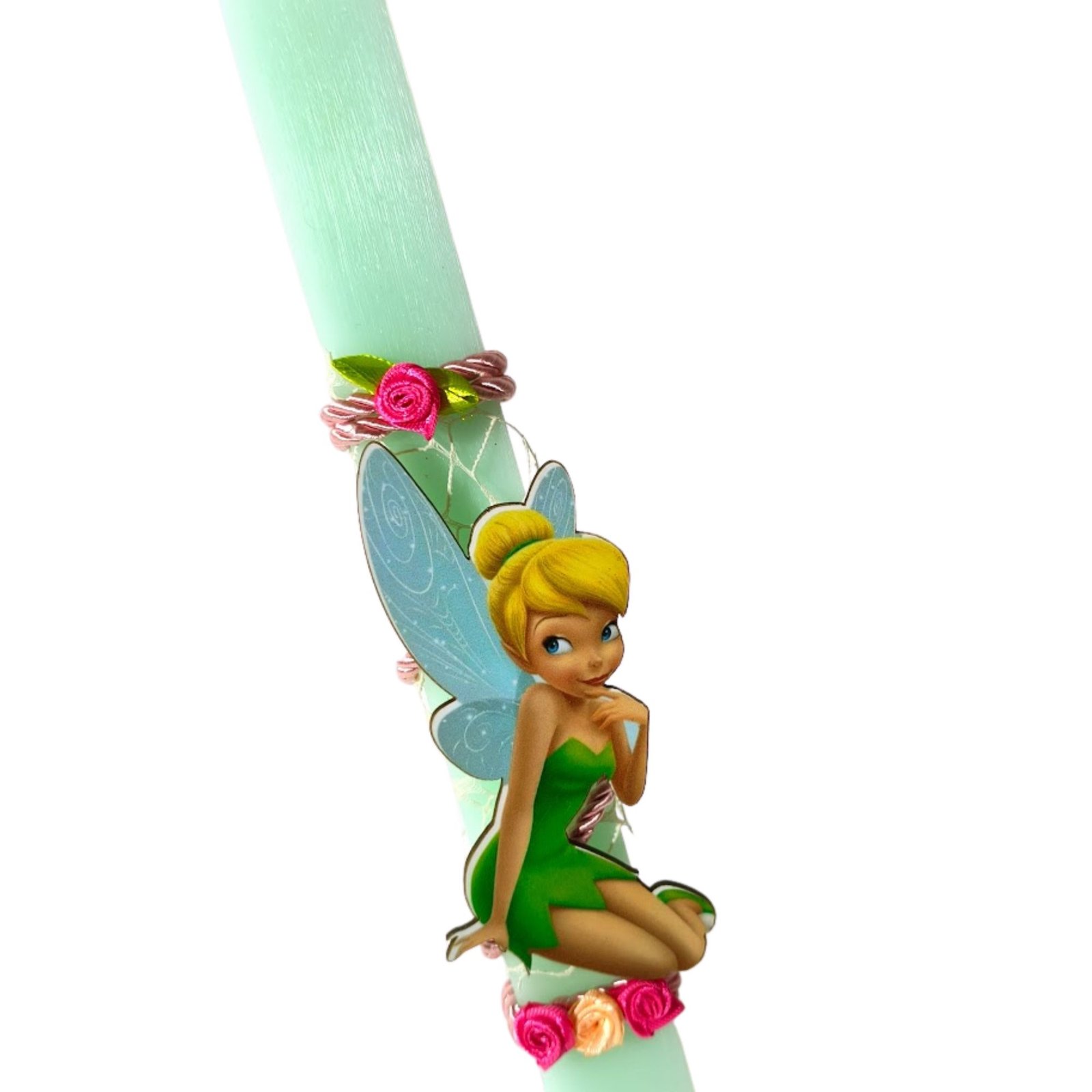 Πασχαλινή λαμπάδα με ξύλινο εκτυπωμένο στοιχείο την διάσημη σκανδαλιάρα νεράιδα και φίλη του Πήτερ Παν!!.