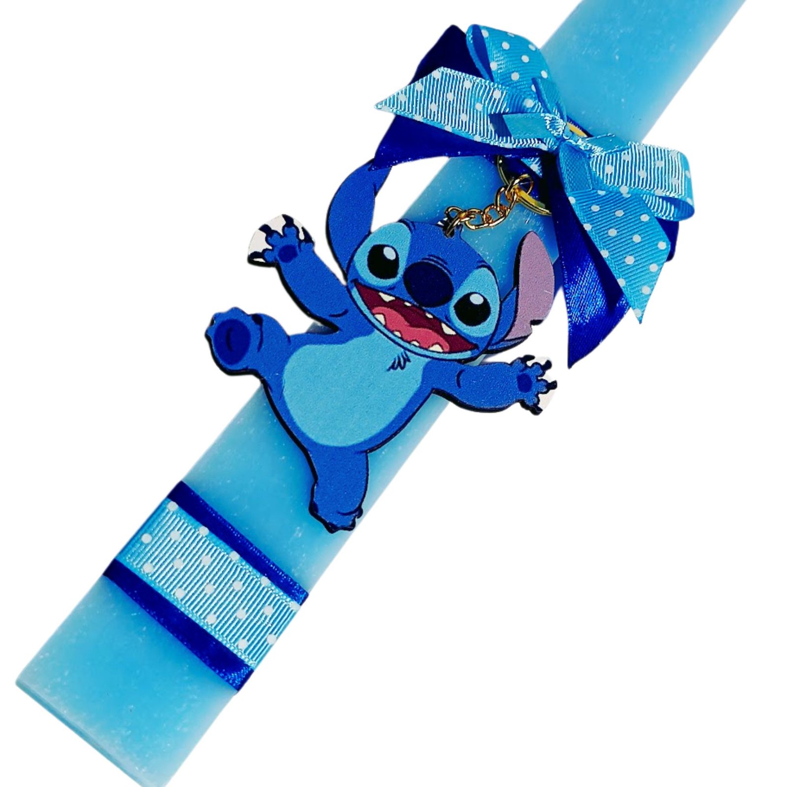 Πασχαλινή λαμπάδα Stitch με ξύλινο μπρελοκ