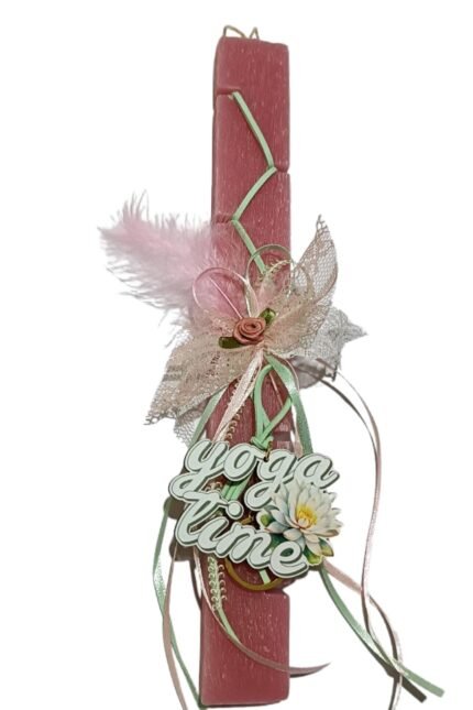 Η λαμπάδα είναι σε κίτρινο χρώμα διακοσμημένη με κορδέλες σε κίτρινο, πράσινο και πορτοκαλί χρώμα.