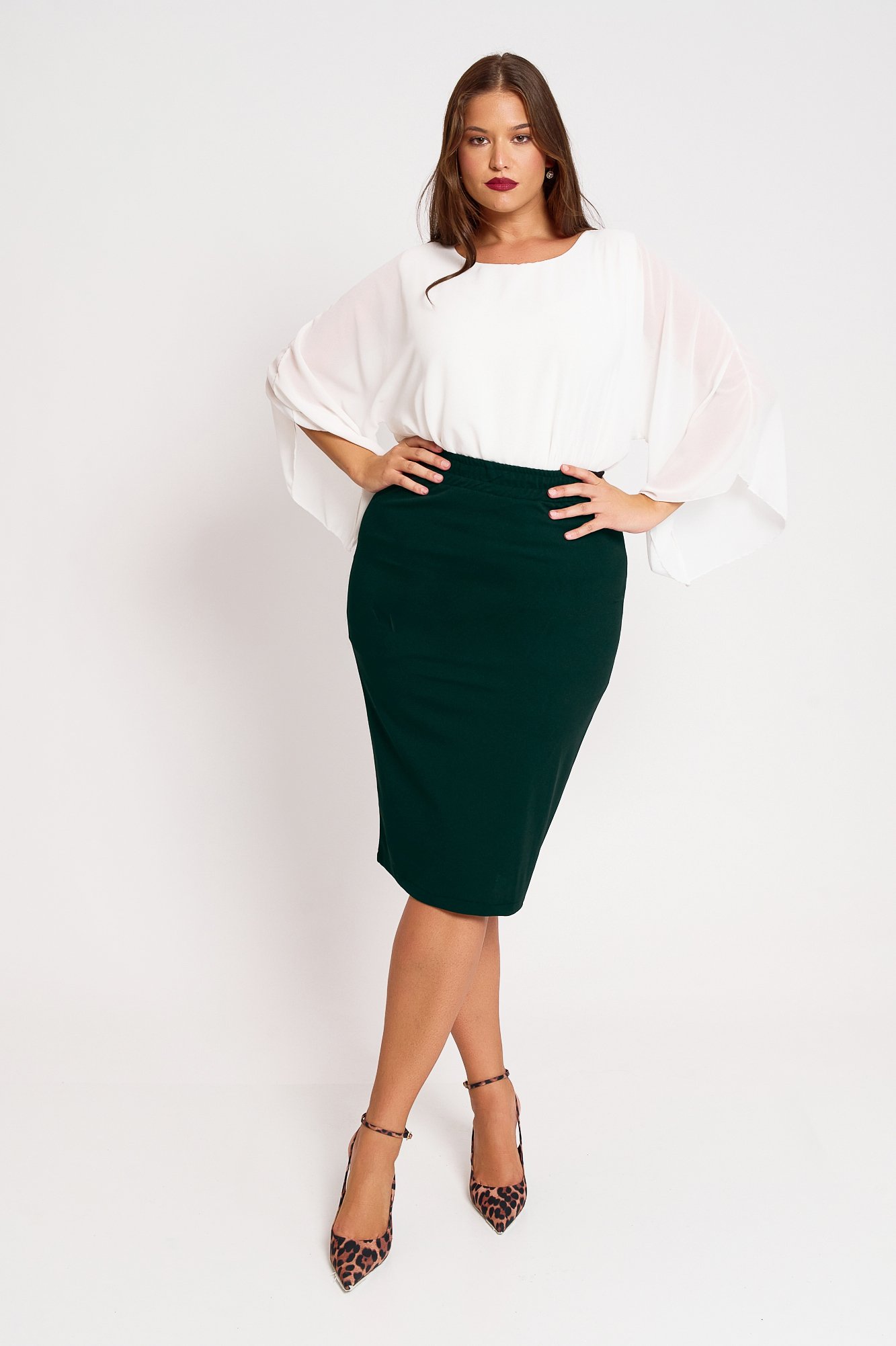 Το φούστα Pencil Φούστα Ελαστική Κρεπ Alora Πράσινο της JUCITA συνδυάζει άνεση και στυλ. Plus size μόδα για κομψές γυναίκες γεμάτες αυτοπεποίθηση.
