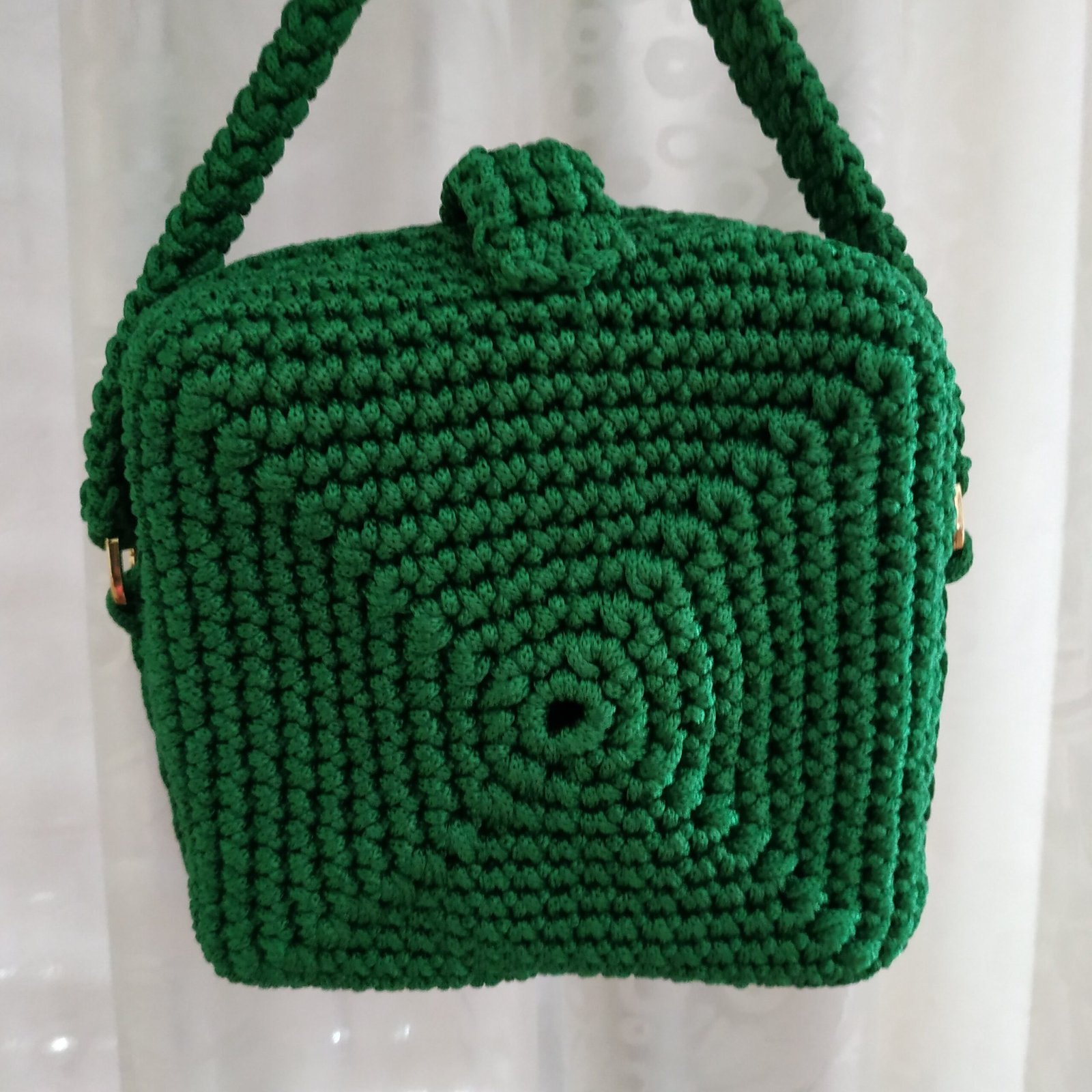 Πλεκτή τσάντα τετράγωνη 18 εκ σε κυπαρισσί χρώμα με μεταλλικό κούμπωμα.