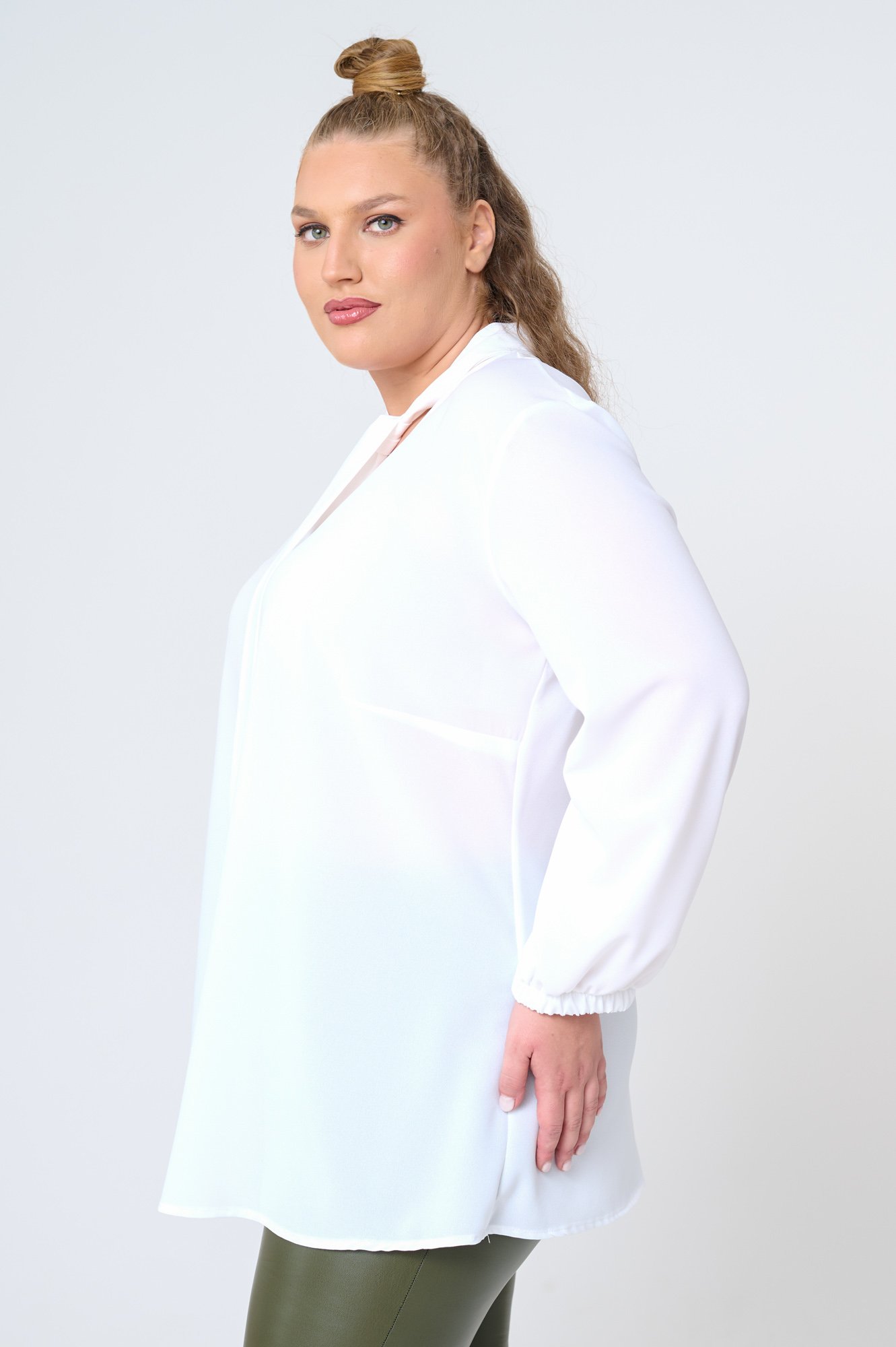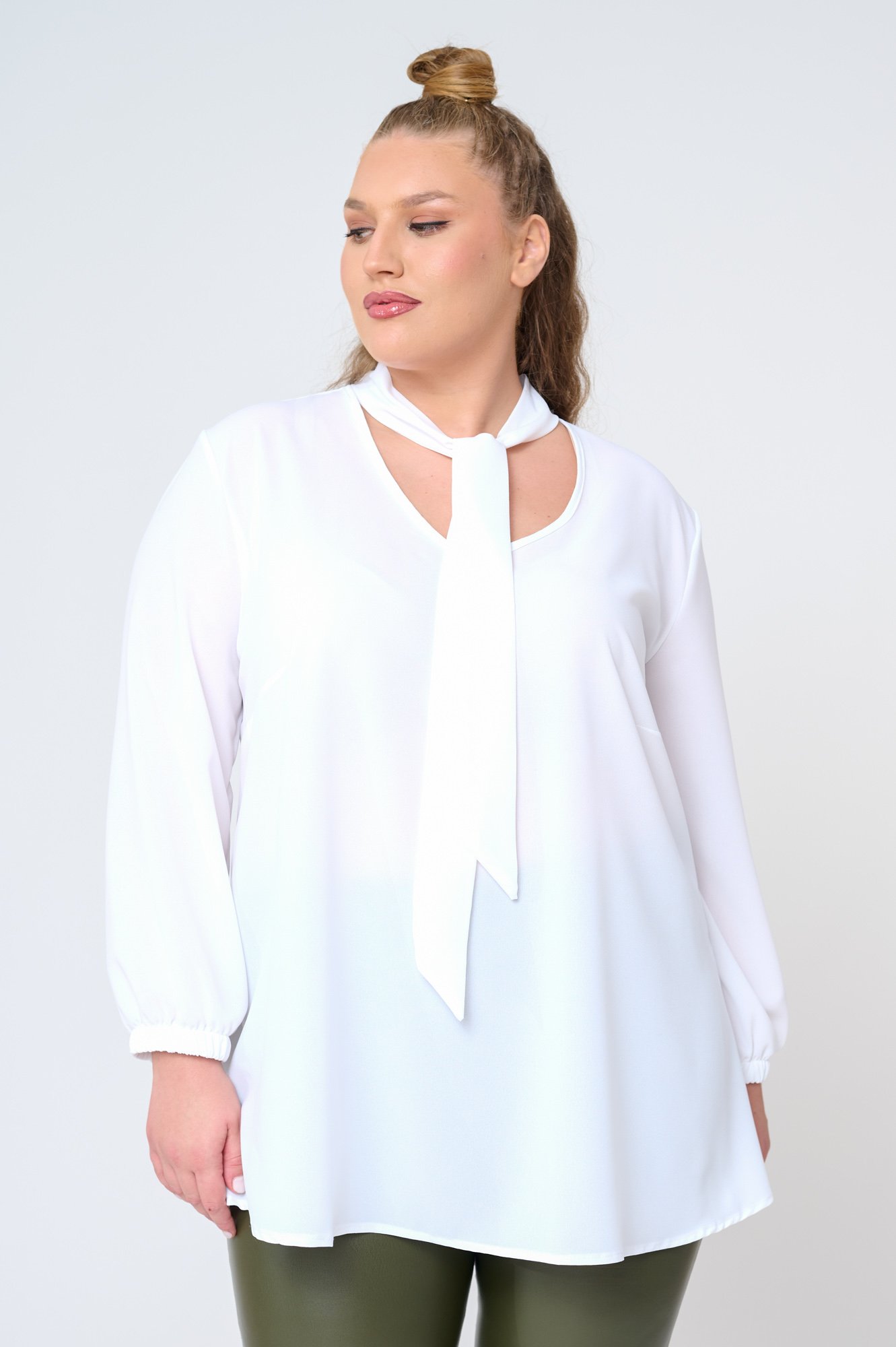 Το τοπ Πουκαμίσα Με Γραβάτα Sasa Λευκό της JUCITA συνδυάζει άνεση και στυλ. Plus size μόδα για κομψές γυναίκες γεμάτες αυτοπεποίθηση.