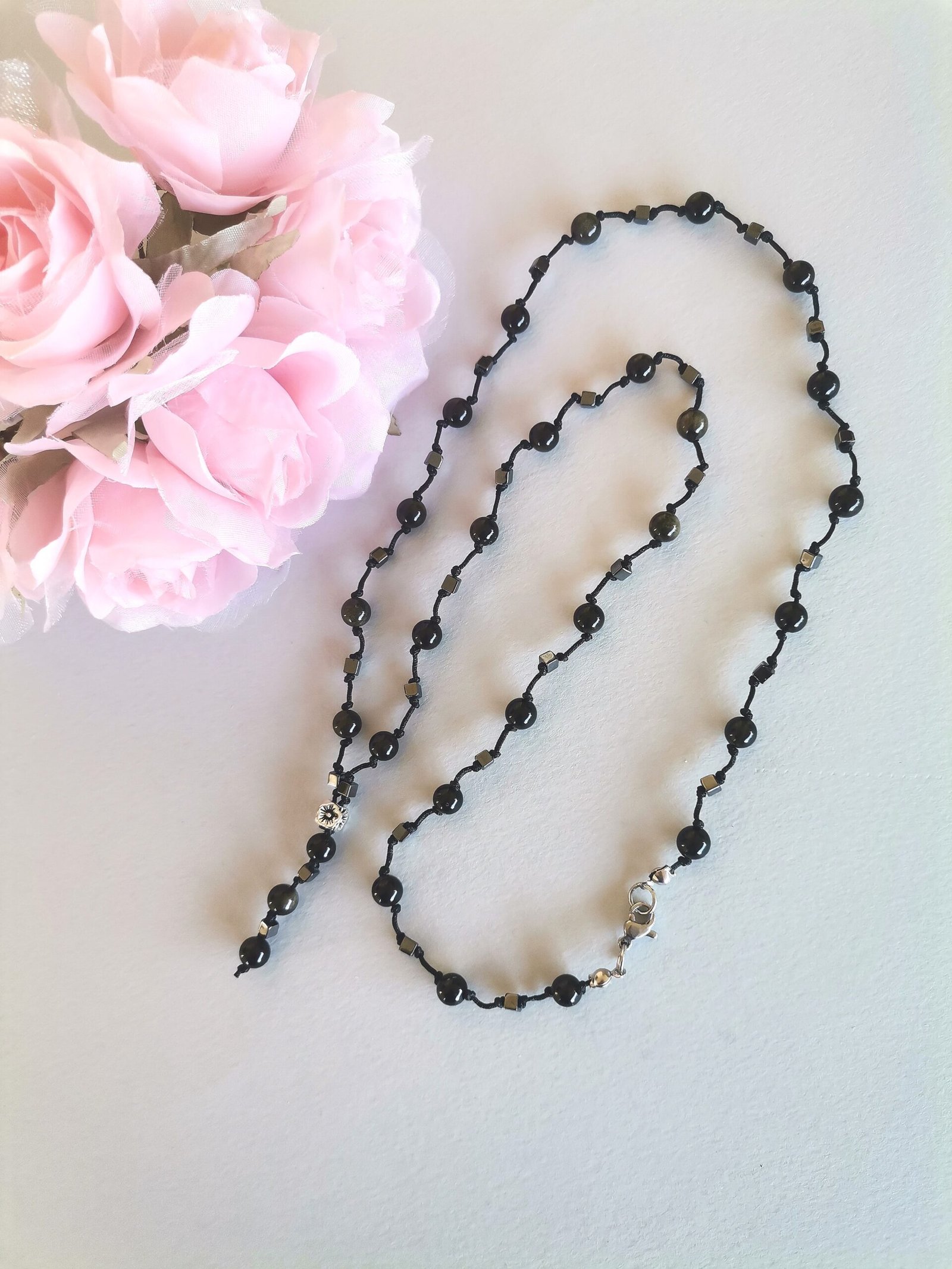 Ροζάριο με Οψιδιανό και Αιματίτες