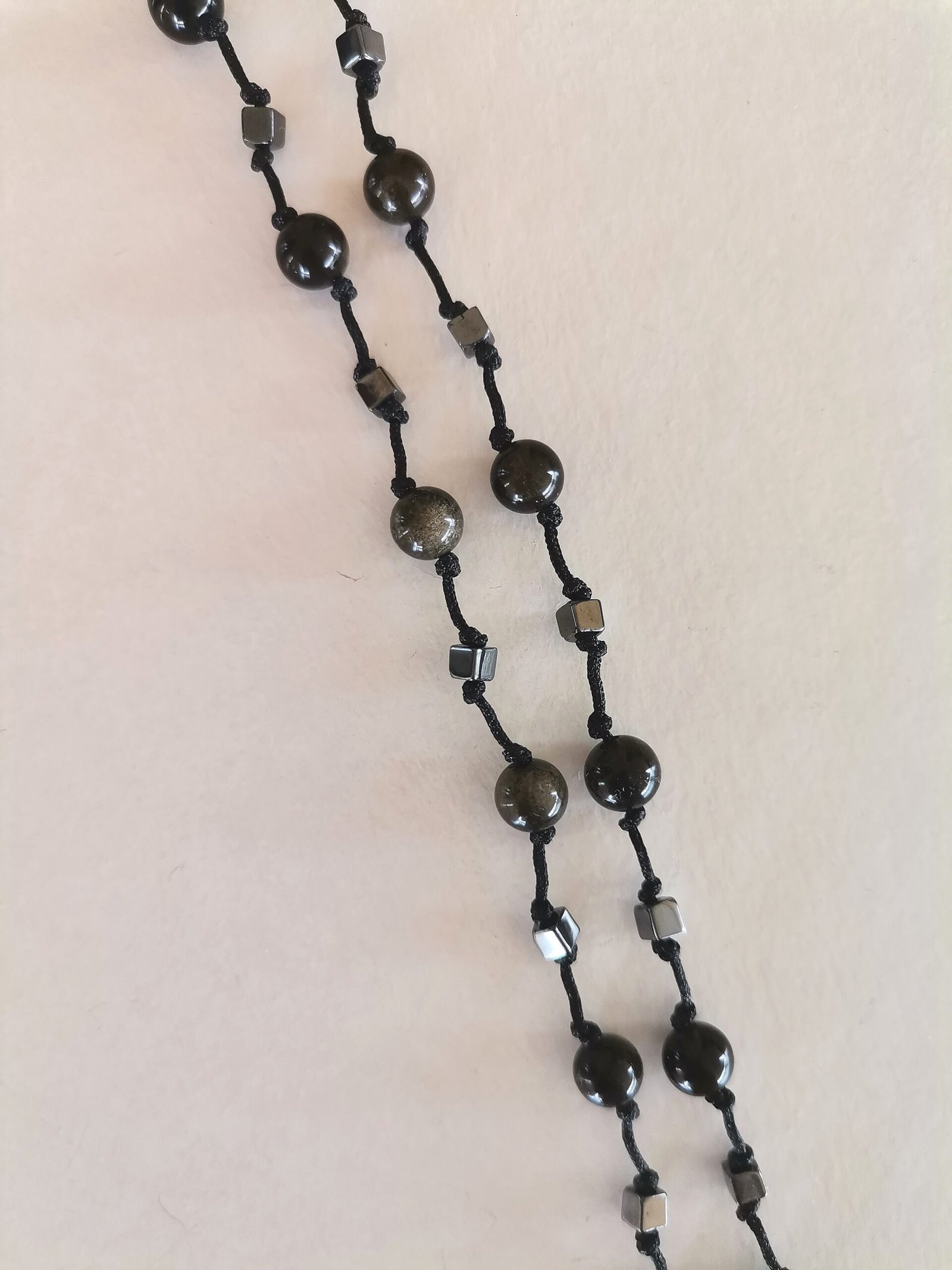 Ροζάριο με οψιδιανό golden sheen και αιματίτη σε κύβο.