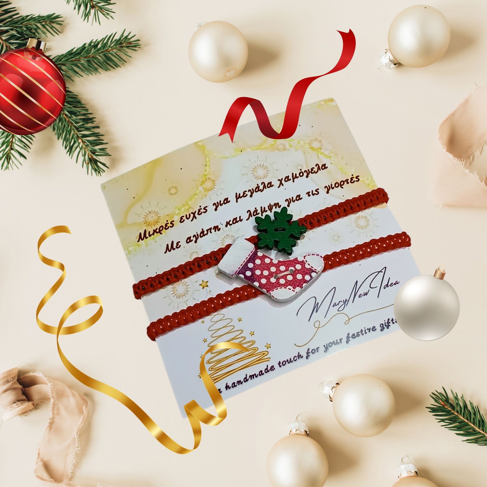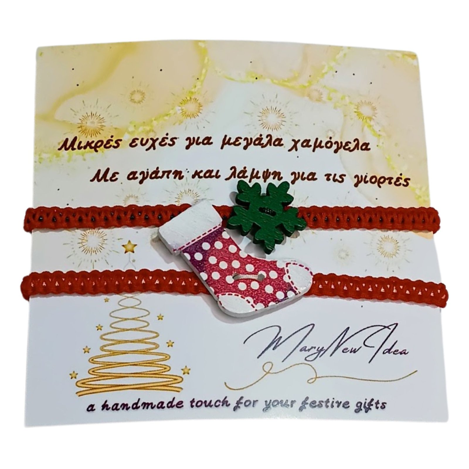 Γιορτινό χειροποίητο σετ δύο βραχιολιών σε κόκκινο–πράσινο, τους πιο αναγνωρίσιμους χριστουγεννιάτικους τόνους.