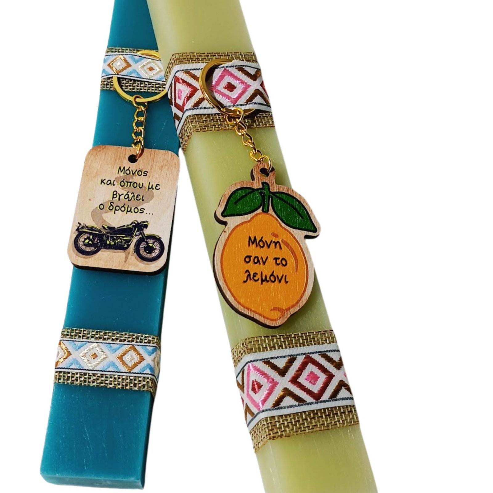 Σετ Πασχαλινές λαμπάδες αρωματικές για ζευγάρια που αγαπούν εξίσου την μοναχικότητα με την συντροφικότητα. Ξύλινα μπρελόκ με χιούμορ αλλά και αγάπη για τον εσωστρεφή χαρακτήρα τους.