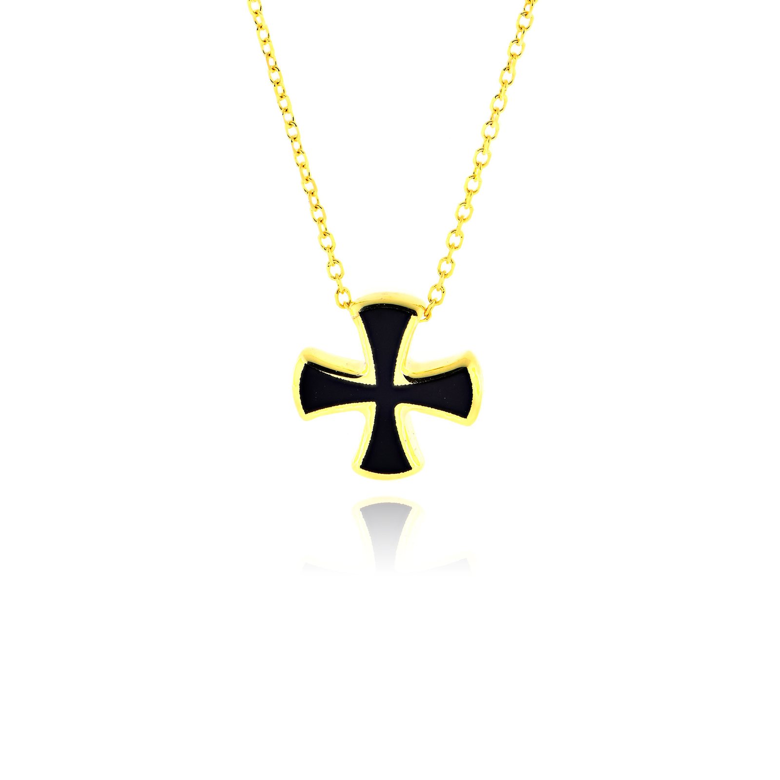 Μικρός σταυρός από κίτρινο χρυσό Κ14, διακοσμημένος με μαύρο σμάλτο για ένα σύγχρονο και ιδιαίτερο στυλ. Ένα διακριτικό και κομψό κόσμημα που μπορεί να φορεθεί καθημερινά ή να προσφερθεί ως συμβολικό δώρο.