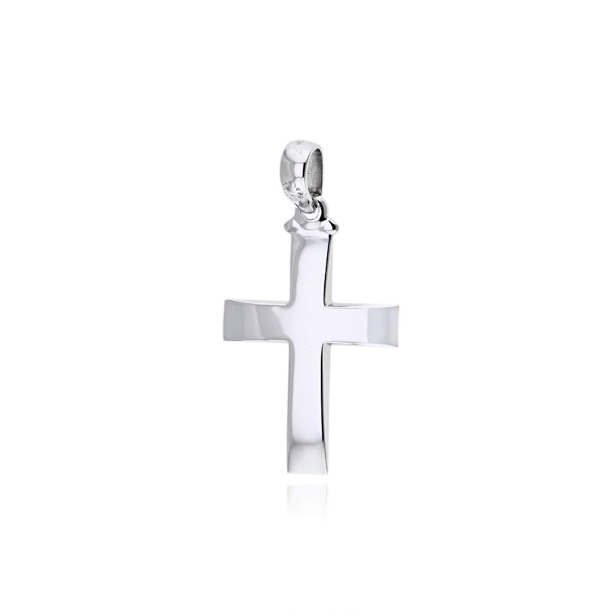 Σταυρός βάπτισης για αγόρι από λευκό χρυσό 14 καρατίων, με λιτό και κομψό σχεδιασμό. Η γυαλιστερή του επιφάνεια αναδεικνύει τη φινέτσα του, προσφέροντας μια διαχρονική επιλογή για αυτή τη σημαντική στιγμή.