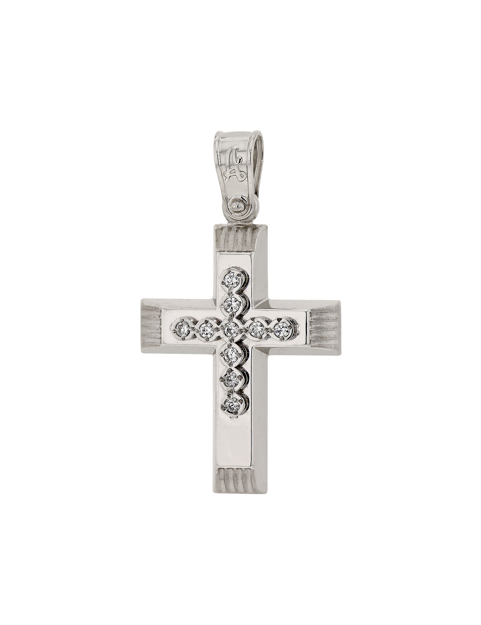Κομψός βαπτιστικός σταυρός για κορίτσι, κατασκευασμένος από λευκό χρυσό 14 καρατίων. Οι λεπτομέρειες με ζιργκόν σε σχήμα σταυρού προσθέτουν λάμψη και ξεχωριστή αισθητική, καθιστώντας τον μια ιδανική επιλογή για την ημέρα της βάπτισης.