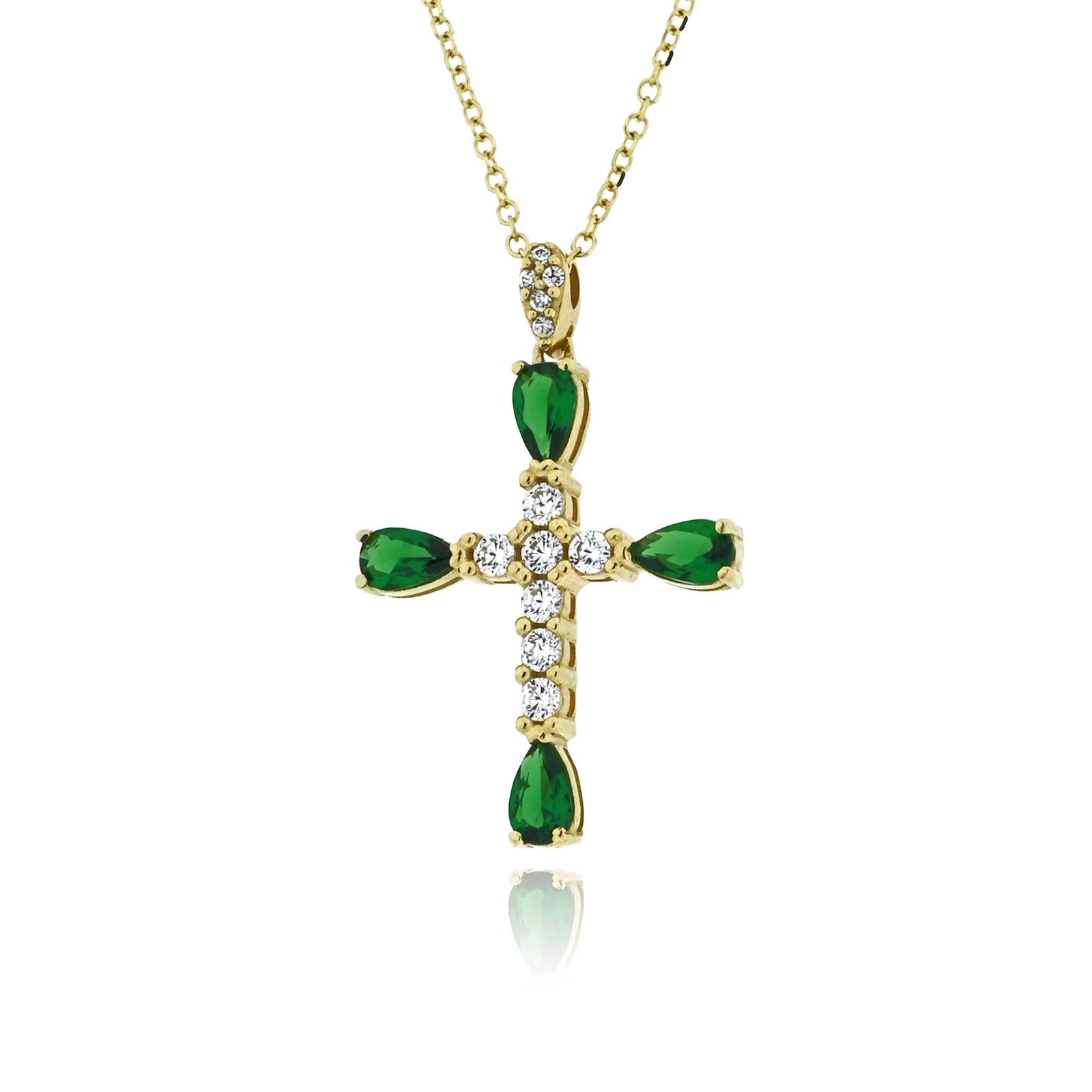 Αυτός ο υπέροχος σταυρός βάπτισης για κορίτσι είναι μια λαμπερή επιλογή για την ιδιαίτερη στιγμή της βάπτισης. Κατασκευασμένος από κίτρινο χρυσό 14 καρατίων και διακοσμημένος με λαμπερά ζιργκόν σε αποχρώσεις πράσινου και λευκού, αυτός ο σταυρός ακτινοβολεί φωτεινότητα και κομψότητα. Η λεπτομερής σχεδίαση του κοσμήματος και η φρέσκια παρουσία των ζιργκόν το καθιστούν ένα μοναδικό κομμάτι που θα λατρέψει κάθε μικρή πριγκίπισσα.