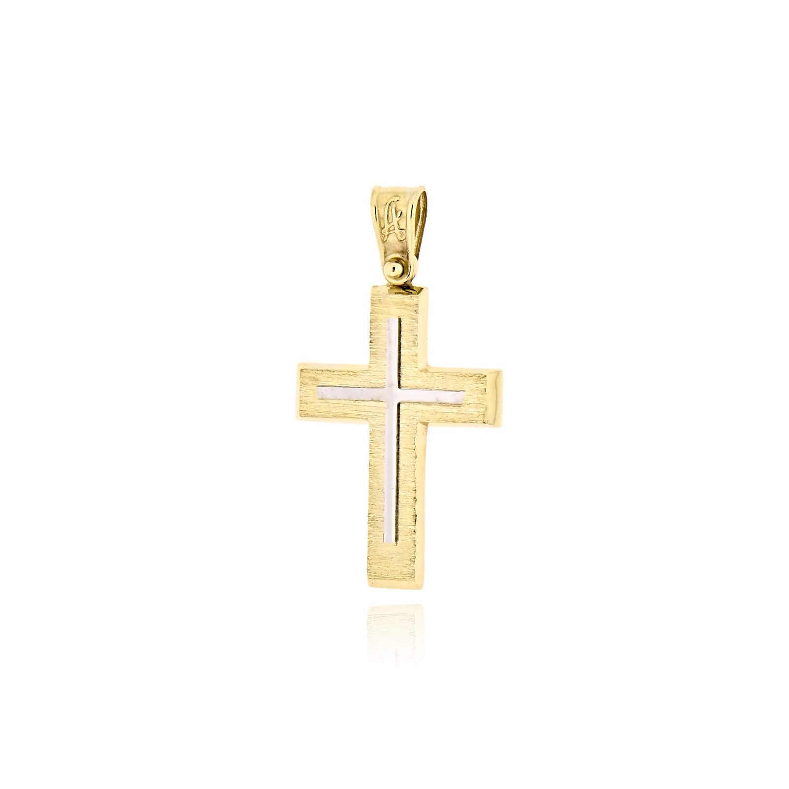 Σταυρός Βάπτισης Σκέτος για Αγόρι από Κίτρινο και Λευκό Χρυσό 14 Καρατίων. Ένας ιδιαίτερος σταυρός που ξεχωρίζει με το σαγρέ φινίρισμά του, αναδεικνύοντας την αντίθεση ανάμεσα στον κίτρινο και τον λευκό χρυσό. Κλασικό και διαχρονικό σχέδιο, ιδανικό για μια ξεχωριστή στιγμή.