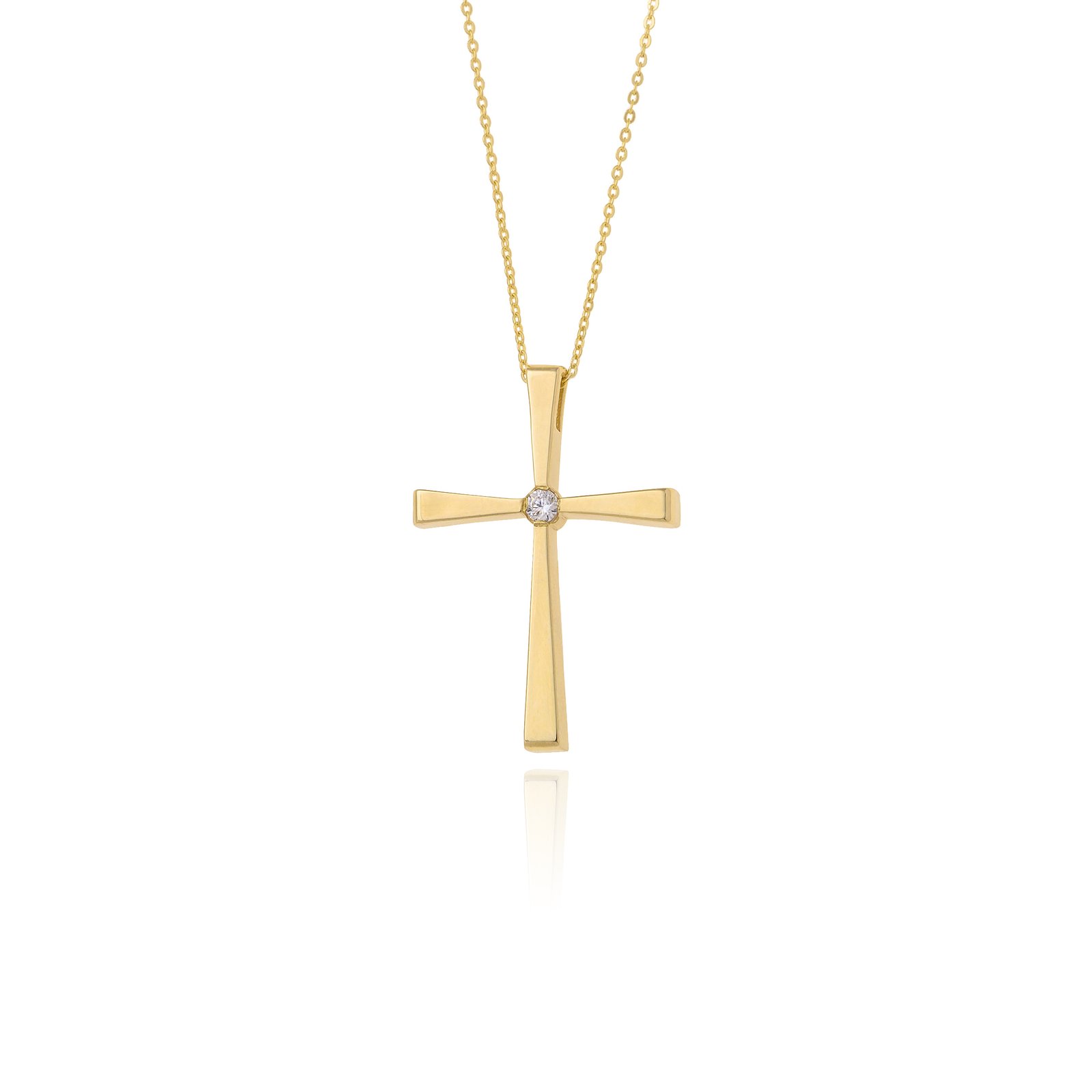 Σταυρός βάπτισης για κορίτσι Val’Oro, μια λαμπερή επιλογή για τη βάπτιση μιας μικρής πριγκίπισσας. Κατασκευασμένος από κίτρινο χρυσό 14 καρατίων, ο σταυρός αυτός είναι διακοσμημένος με ένα λαμπερό ζιργκόν στο κέντρο του. Η λεπτή αλυσίδα προσθέτει μια διακριτική πινελιά κομψότητας και φινέτσας. Ένας σταυρός ιδανικός για βάπτιση που θα αποτελέσει ένα πολύτιμο και αξιόλογο δώρο για τη μικρή σας.