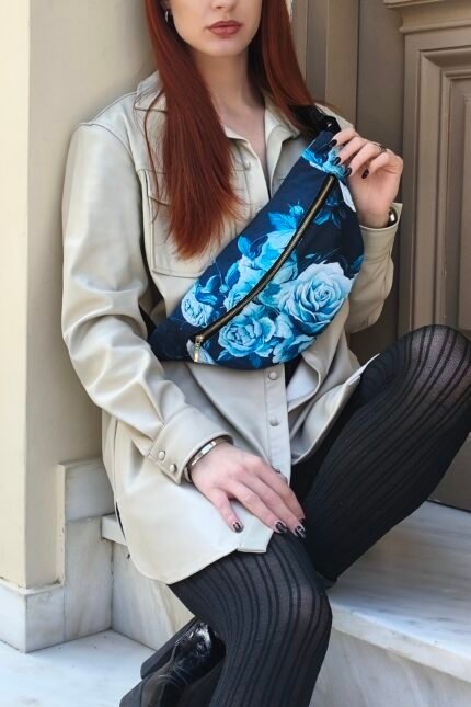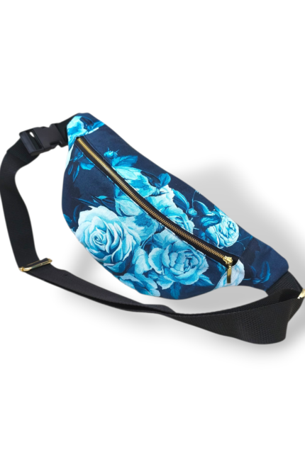 Χειροποίητη τσάντα χιαστί / μπανάνα μήκους 30 εκ. Από σύνθεση οικολογικού δέρματος και ύφασμα βαμβακερό σύμμεικτο. Διαθέτει φερμουάρ για κλείσιμο και εσωτερική επένδυση με μαύρο, βαμβακερό ύφασμα .