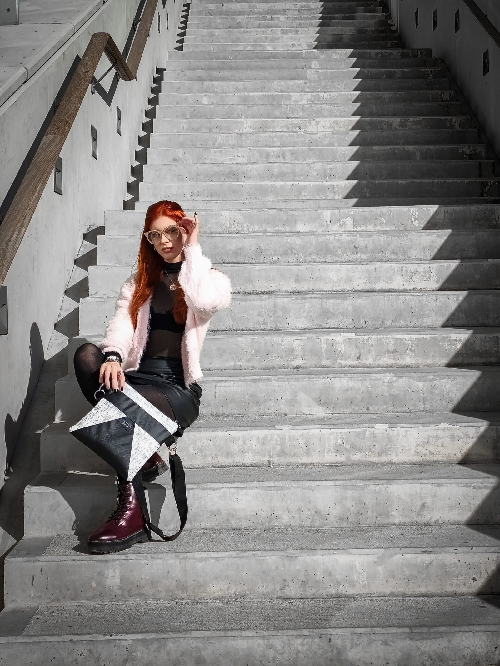 Χειροποίητη τσάντα της συλλογής απο faux δέρμα με σύνθεση από υφαντό ολογραφικό. Η μια όψη φέρει γεωμετρικό σχέδιο, ενώ η πίσω είναι όλη μαύρη δερματίνη. Μέγεθος 35εκ. Επενδυμένη με φόδρα μαύρη. Διαθέτει φερμουάρ για κλείσιμο και ιμάντα αυξομειώμενο για να φορεθεί τόσο στον ώμο όσο και χιαστί.