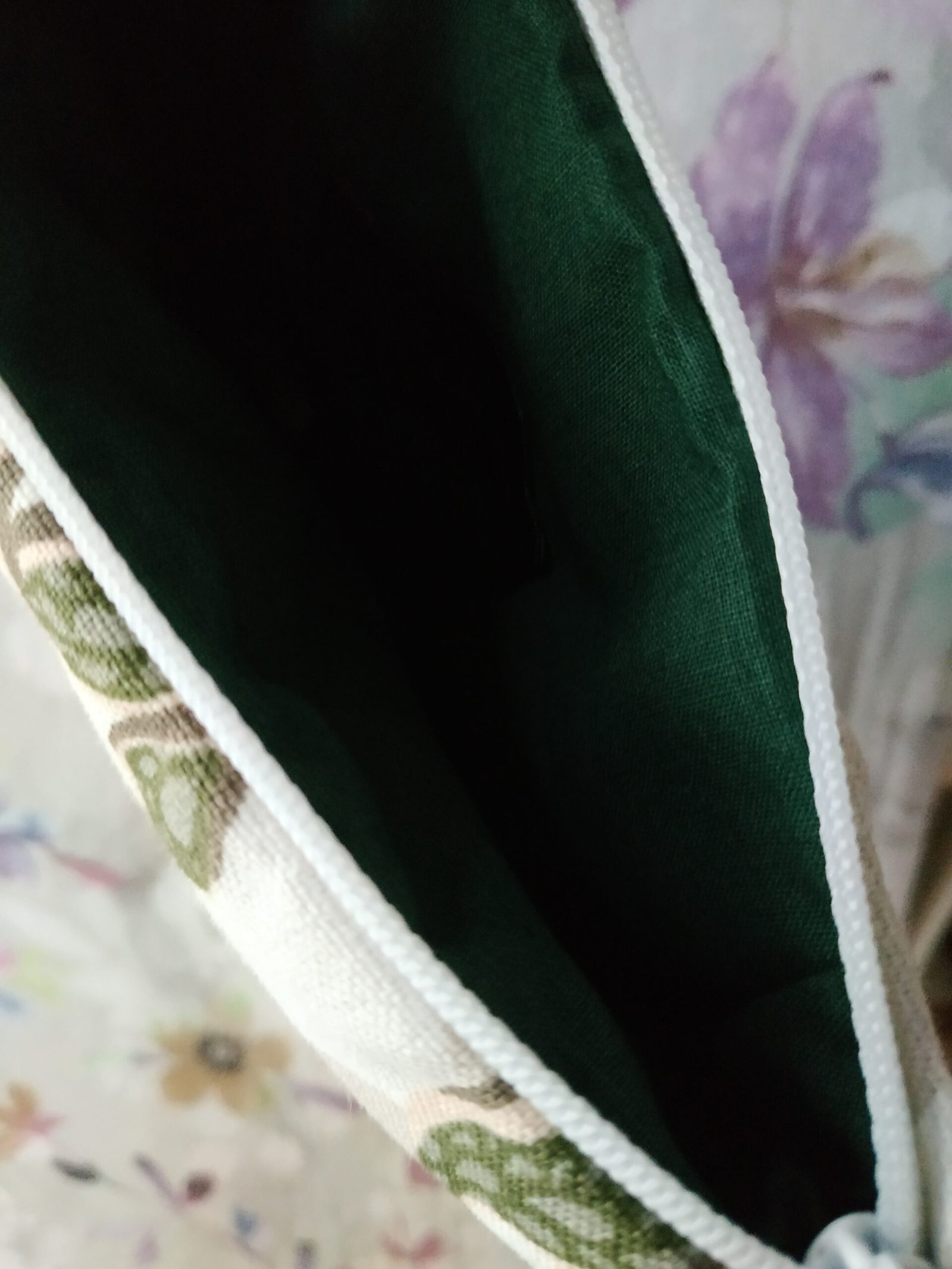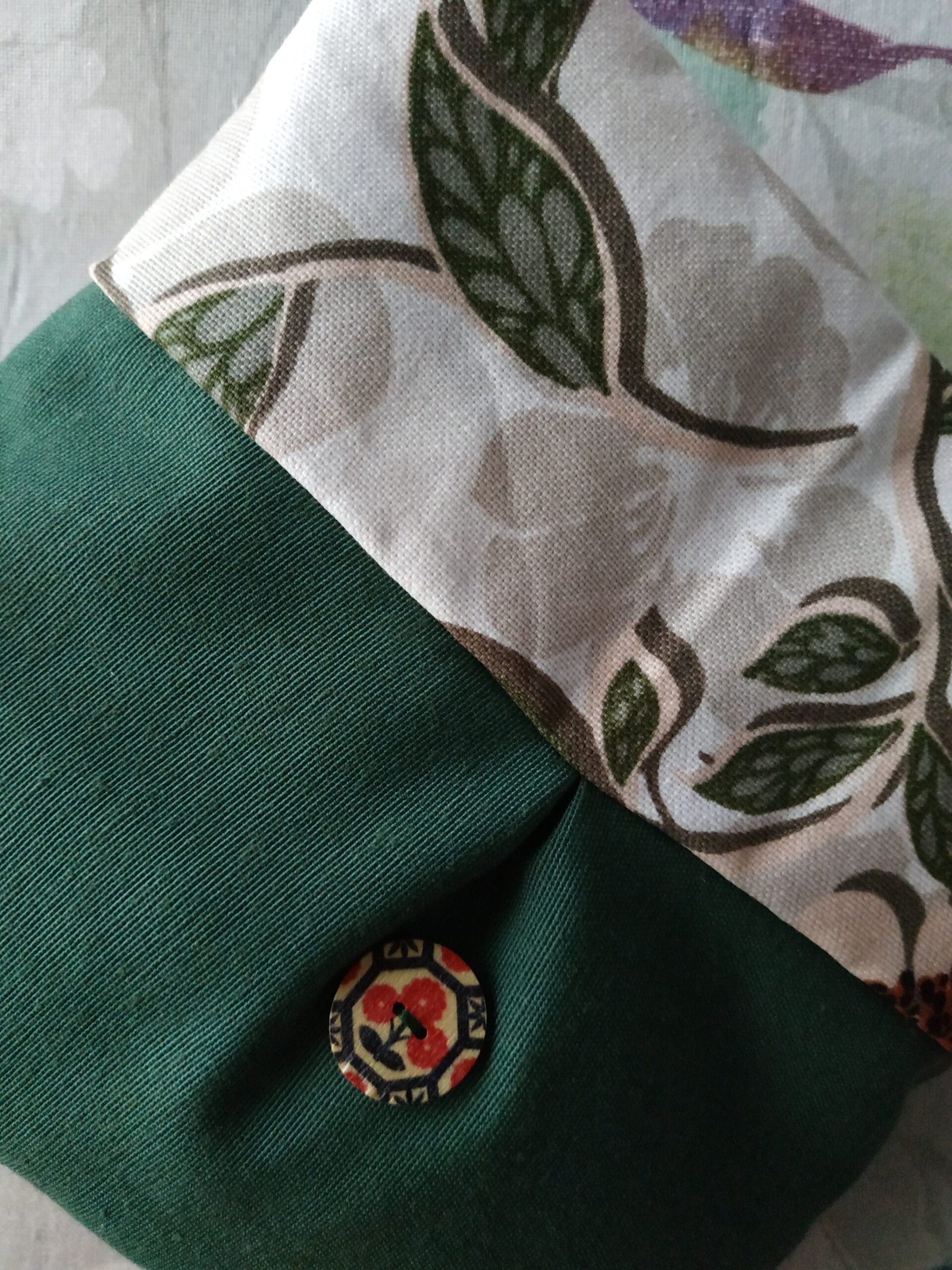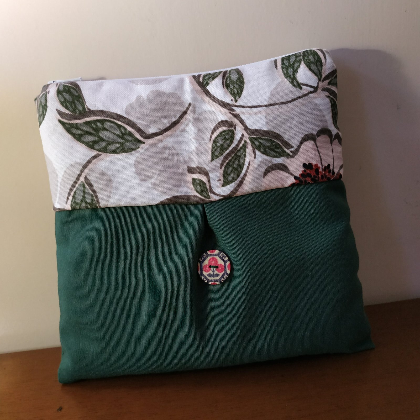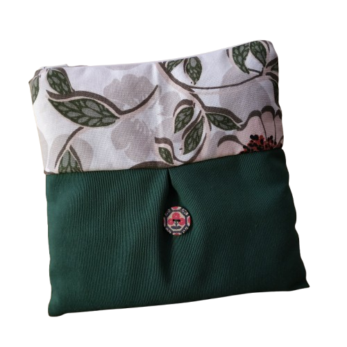 Τσαντάκι χειρός με φερμουάρ και διάσταση 19*20εκ. Είναι κατασκευασμένο εξωτερικά από δύο υφάσματα ένα μονόχρωμο, ένα εμπριμέ και ένα τρίτο εσωτερικά και διακοσμημένο με ένα ξύλινο κουμπί και στις δύο πλευρές. Είναι πάρα πολύ ελαφρύ και ιδανικό για όλες τις ώρες της ημέρας με ικανοποιητικό χώρο για όλα τα απαραίτητα αντικείμενα για μια βόλτα. Ανοιγοκλείνει με φερμουάρ για να παραμένουν ασφαλή όλα τα πολύτιμα αντικείμενά σας.