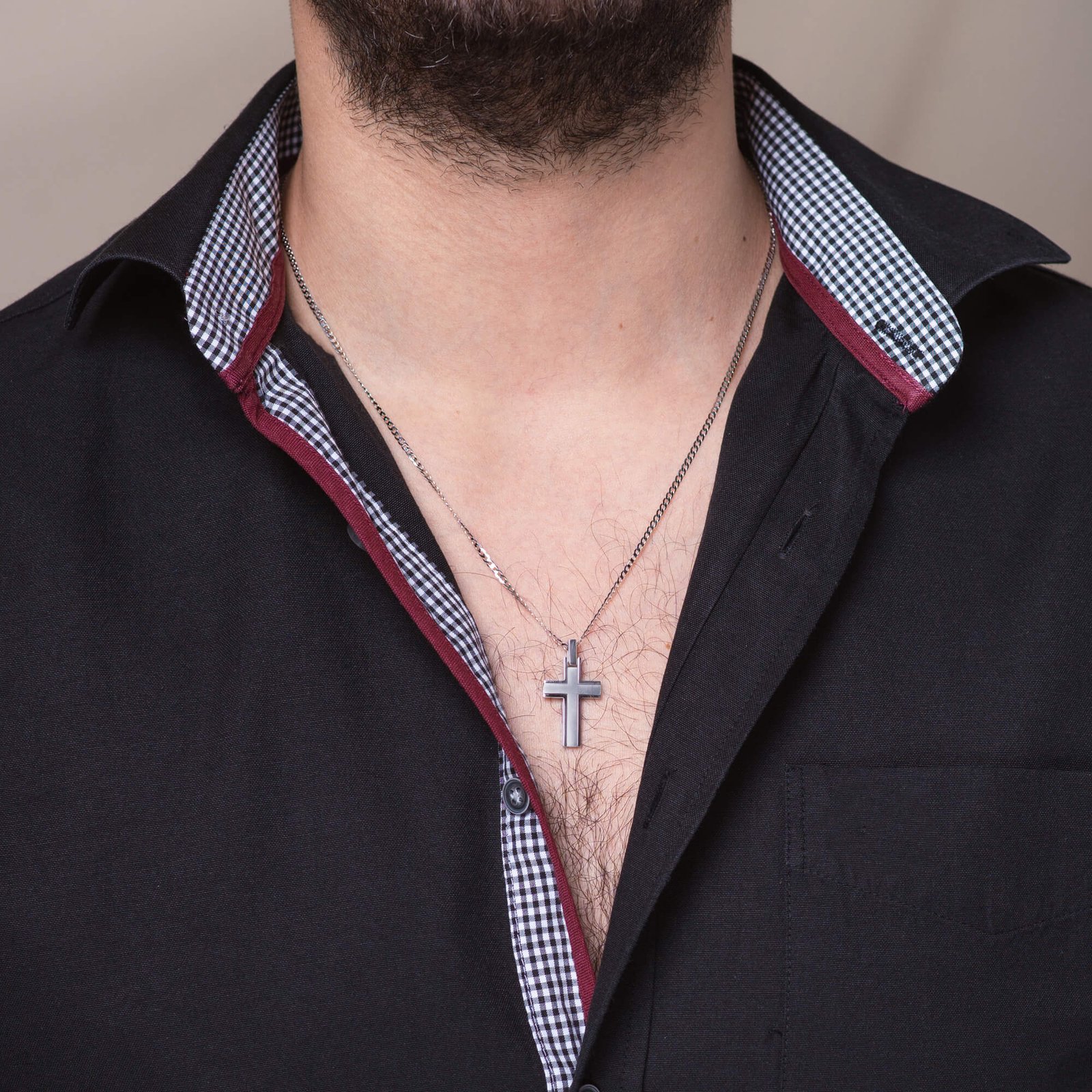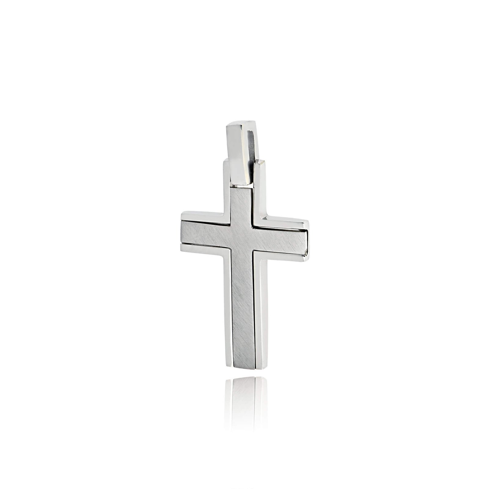 Ένας ξεχωριστός σταυρός βάπτισης για αγόρι απο την Val΄Oro από λευκό χρυσό 14 καρατίων με δύο υφές στο φινίρισμα.