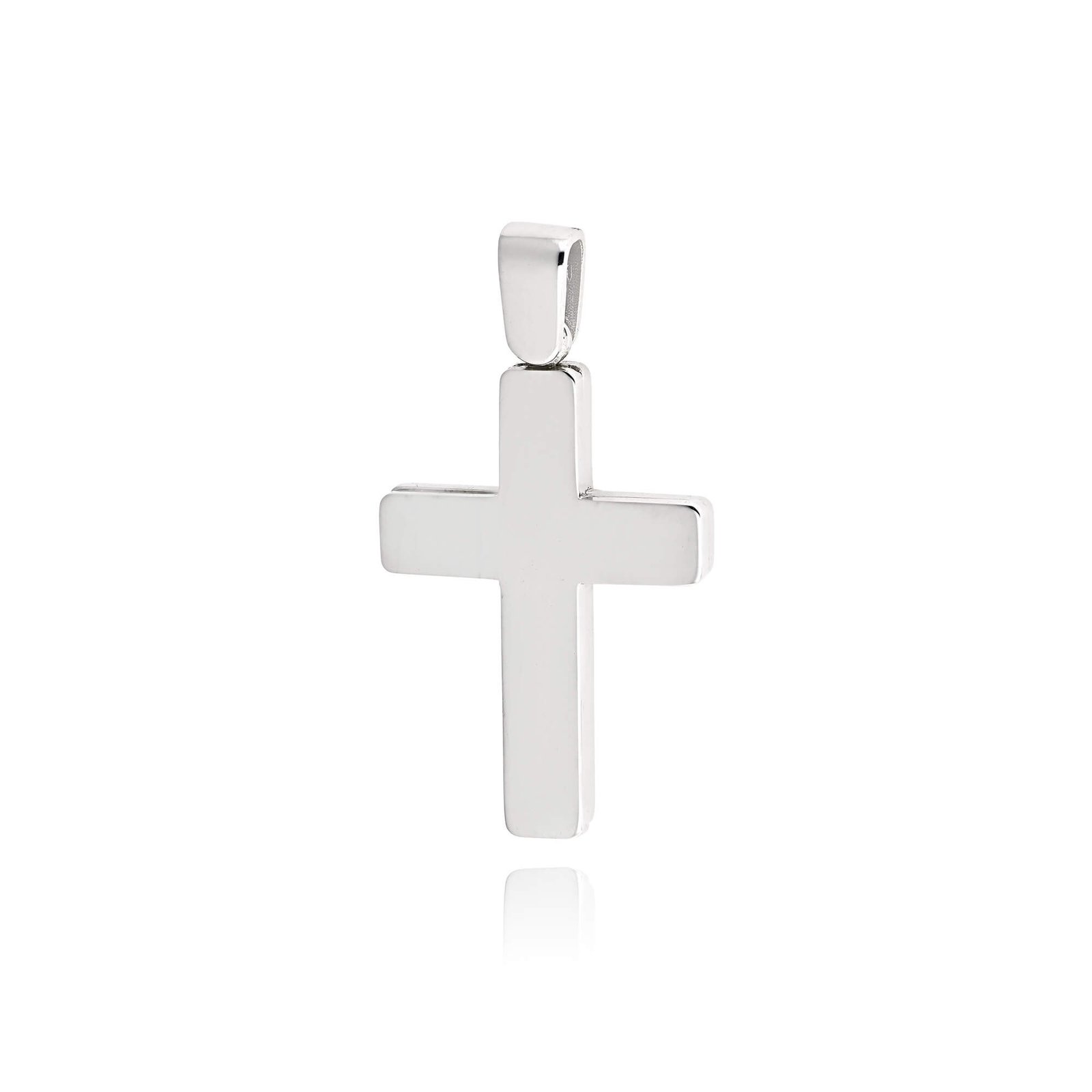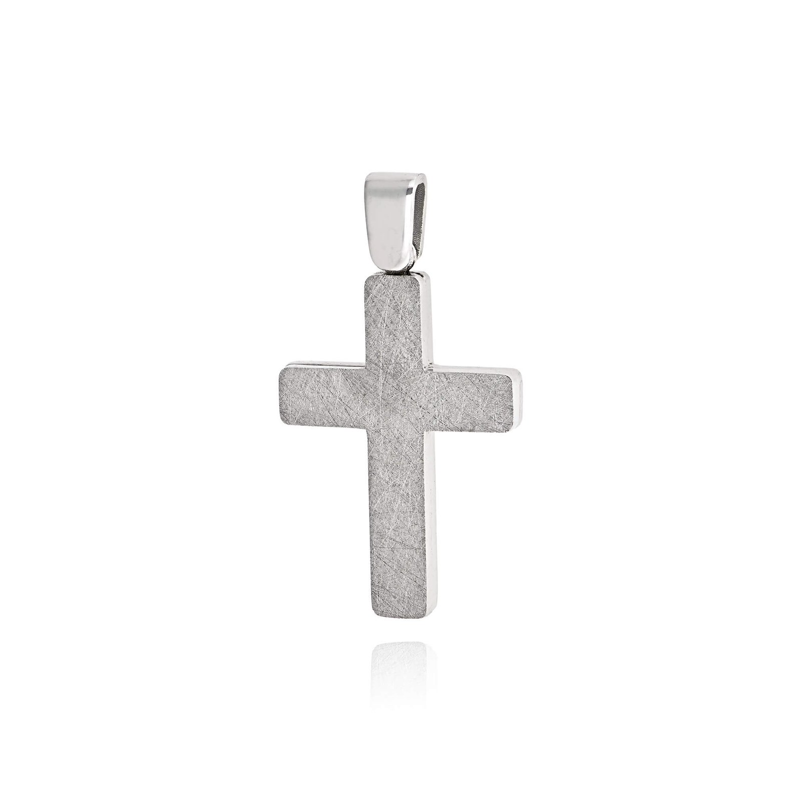 Σταυρός βάπτισης Val΄Oro από λευκό χρυσό 14 καρατίων, με κομψό σχεδιασμό και διπλή όψη. Ο συνδυασμός ματ και γυαλιστερής επιφάνειας προσδίδει ιδιαίτερο χαρακτήρα στο κόσμημα, ενώ το κλασικό του στυλ τον καθιστά ιδανική επιλογή για τη σημαντική αυτή στιγμή.