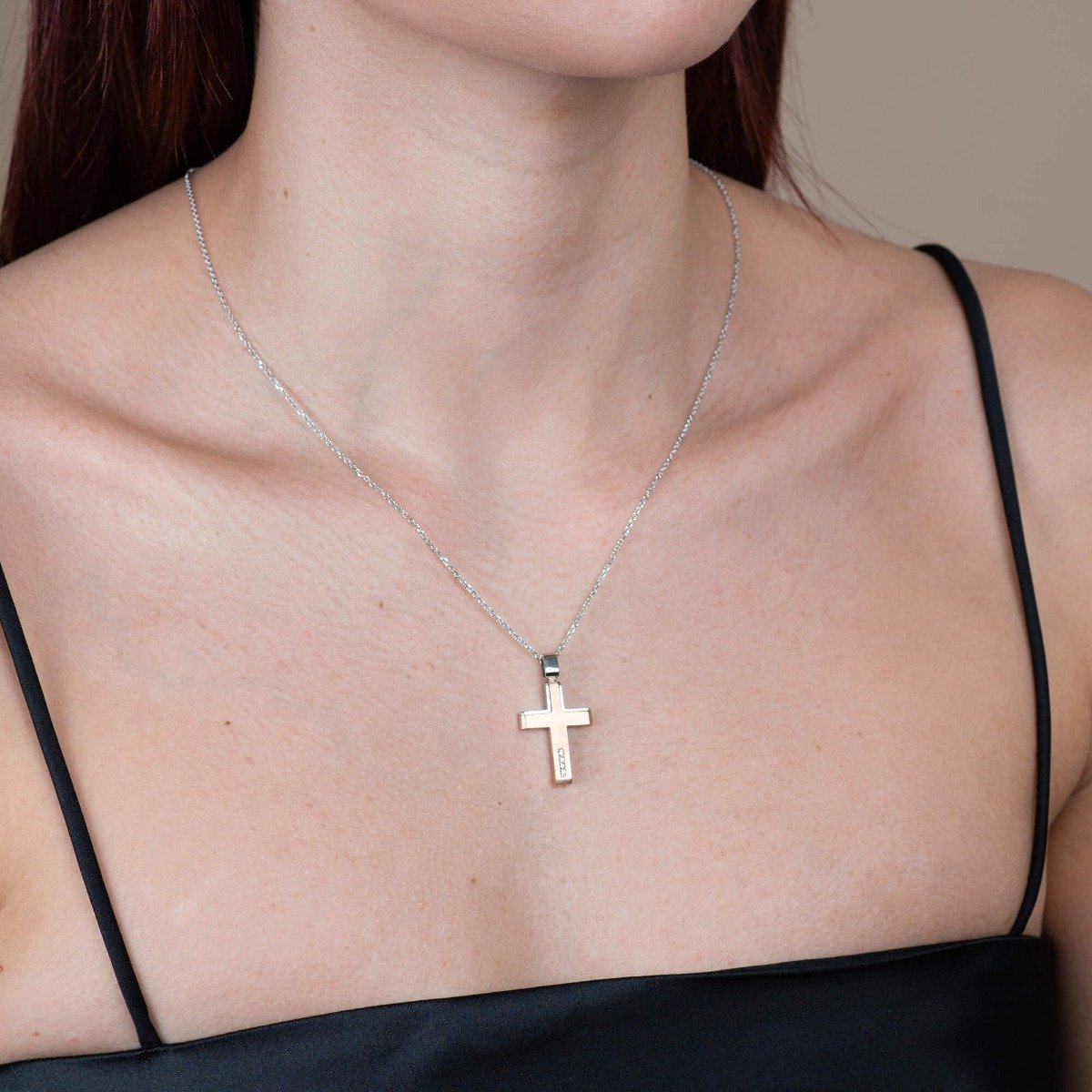 Ένας διαχρονικός σταυρός από ροζ και λευκό χρυσό 14 καρατίων, σχεδιασμένος για να συνοδεύει τις πιο όμορφες στιγμές της ζωής. Οι λαμπερές πέτρες ζιργκόν προσθέτουν μια κομψή λάμψη, ενώ ο διπλός χρωματικός συνδυασμός αναδεικνύει την ιδιαίτερη αισθητική του κοσμήματος. Μια υπέροχη επιλογή για βάπτιση, που συνδυάζει παράδοση και διακριτική πολυτέλεια.