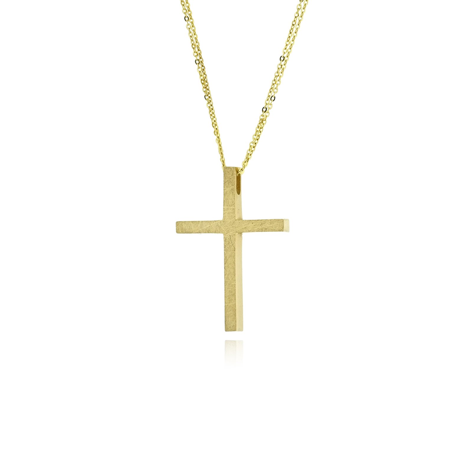 Σταυρός Βάπτισης για κορίτσι της Val΄Oro, ένα υπέροχο κόσμημα με λεπτομέρειες που τον κάνουν να ξεχωρίζει, κατασκευασμένος από κίτρινο χρυσό 14 καρατίων. Η αριστερή πλευρά του σταυρού διακοσμείται διακριτικά με τέσσερα ζιργκόν, προσθέτοντας λάμψη και λεπτομέρεια στο σχέδιο. Ο σταυρός έχει δύο φινιρίσματα, με σαγρέ υφή στην πίσω πλευρά και λουστράτη υφή στην μπροστινή πλευρά.