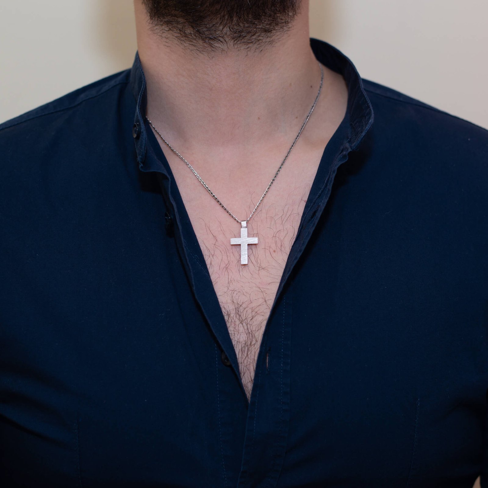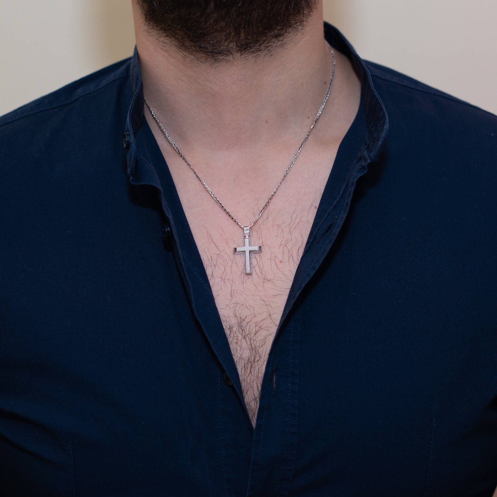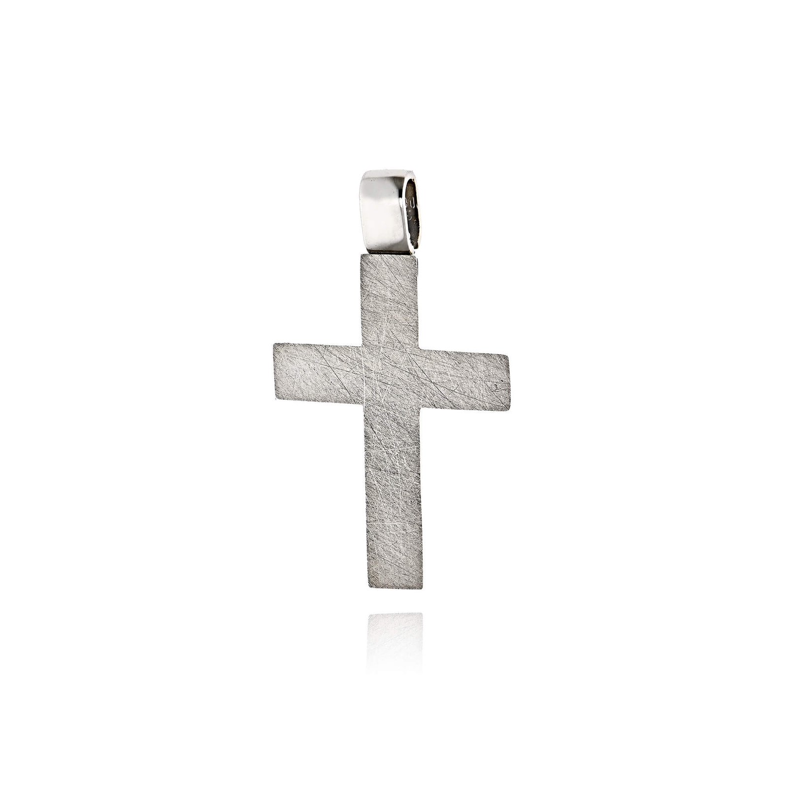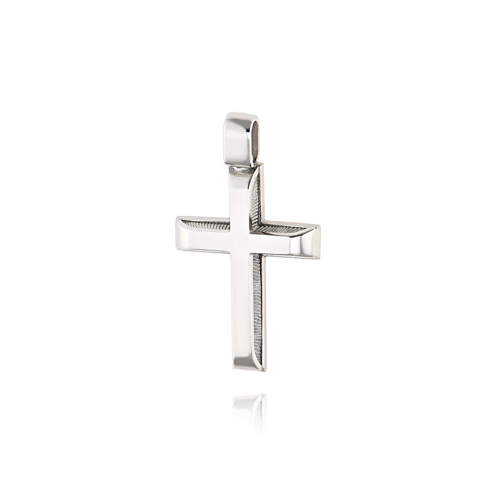 Λιτός σταυρός βάπτισης για αγόρι από την εταιρεία Val΄Oro. Το κλασσικό σχέδιο από λευκό χρυσό 14 καρατίων έχει μια ιδιαίτερη λεπτομέρεια στο πλάι που τον κάνει να ξεχωρίζει!