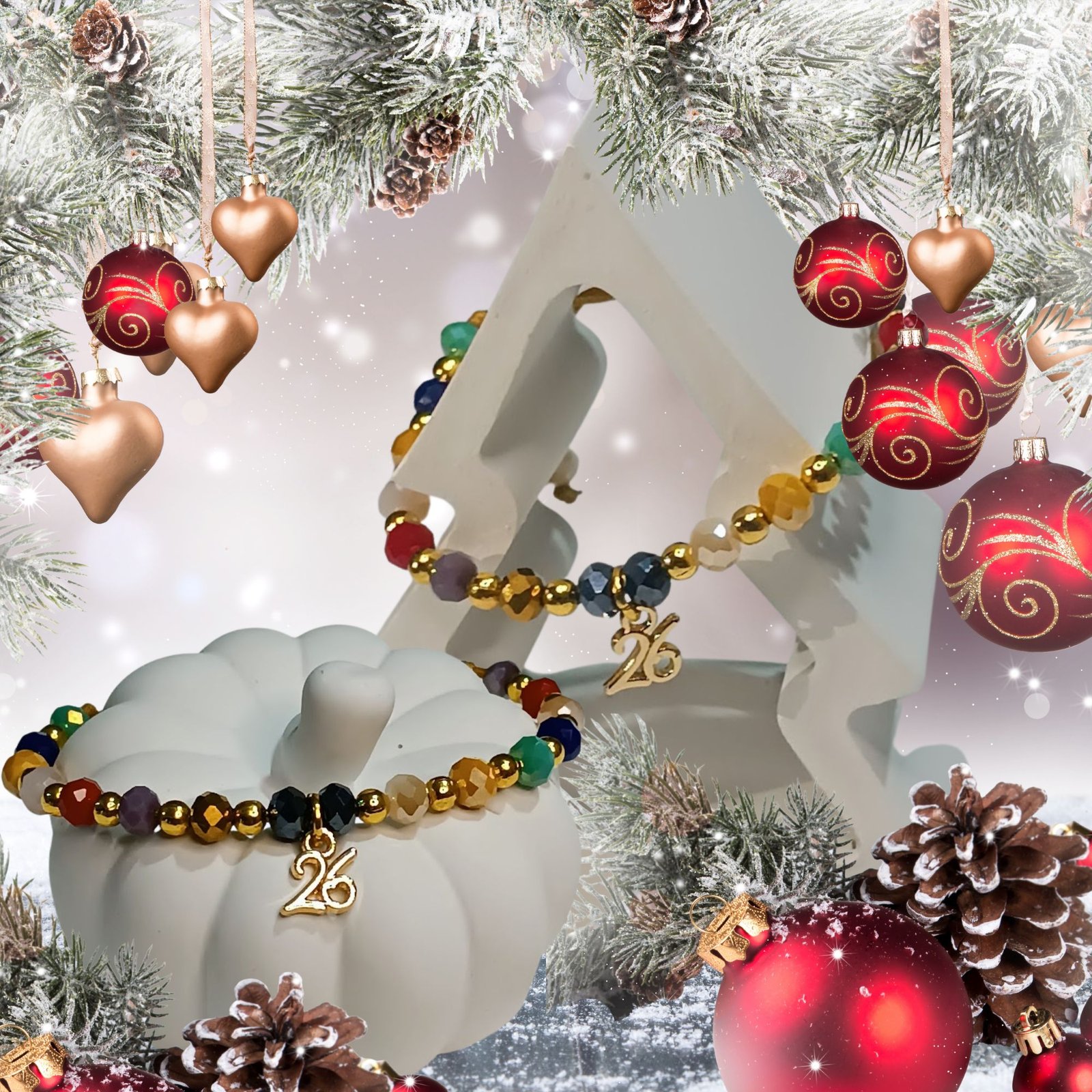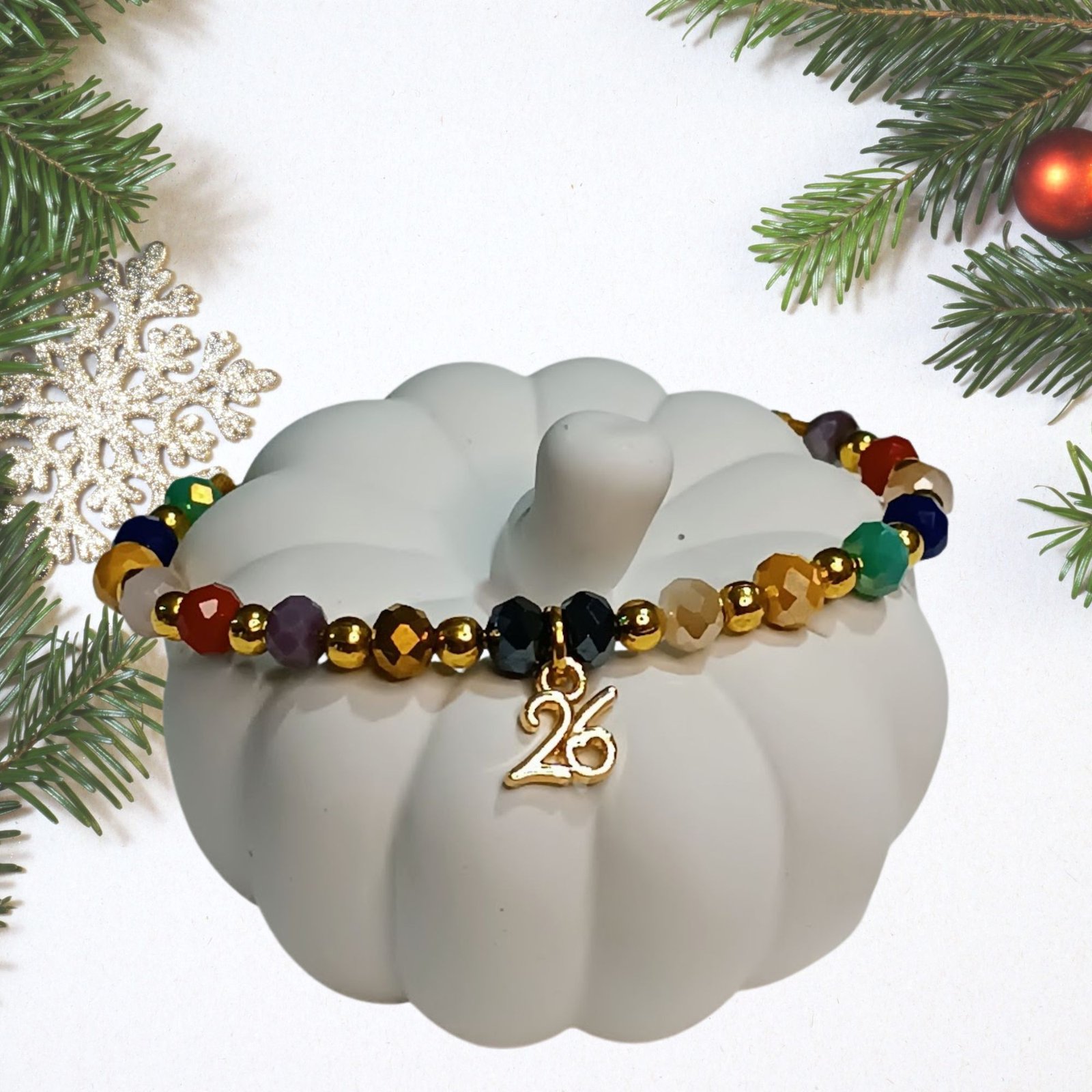Ένας συνδυασμός λαμπερών, πολύχρωμων χαντρών που δημιουργούν παιχνιδιάρικο, θετικό αποτέλεσμα, ενώ το μεταλλικό “26” του δίνει γιορτινό χαρακτήρα.