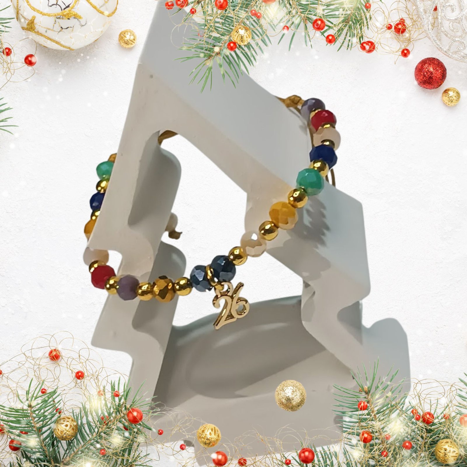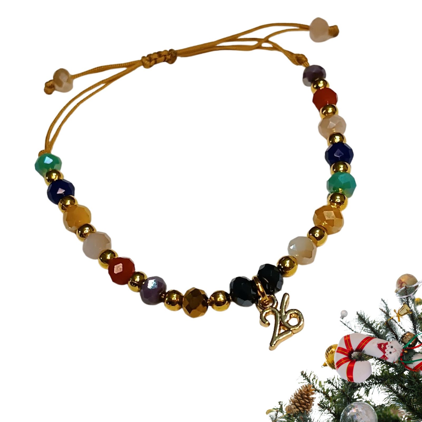 Joyful Mix, πολύχρωμο βραχιόλι- γούρι 2026 με χάντρες και μεταλλικό “26”.