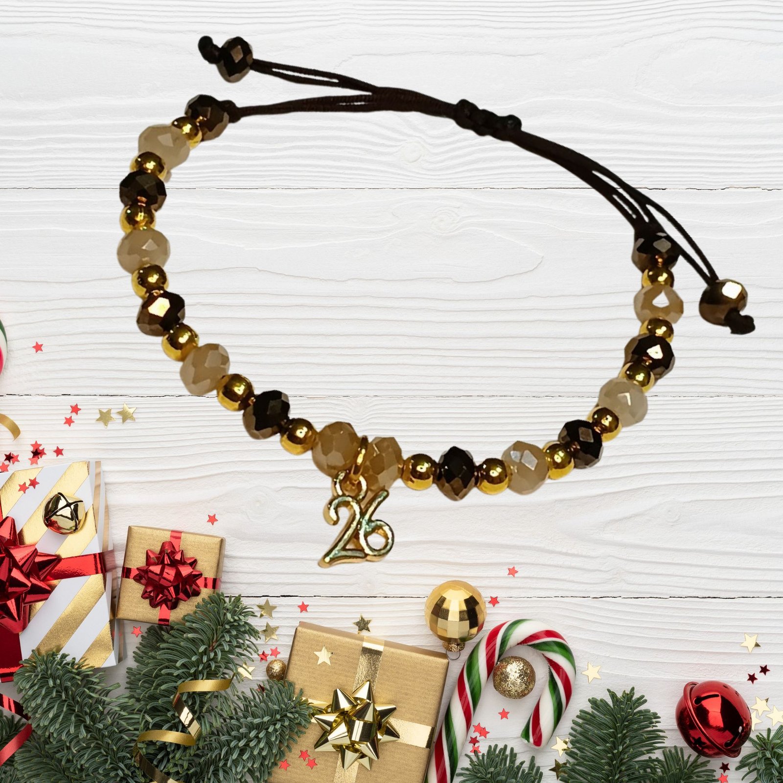 Χειροποίητο βραχιόλι 2026 σε καφέ–μπεζ αποχρώσεις με χάντρες και χρυσή λεπτομέρεια “26”.