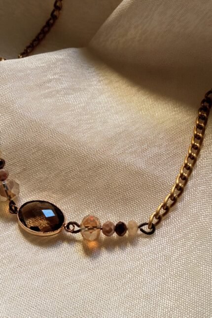 Xειροποίητο ατσάλινο κολιέ με κρύσταλλα