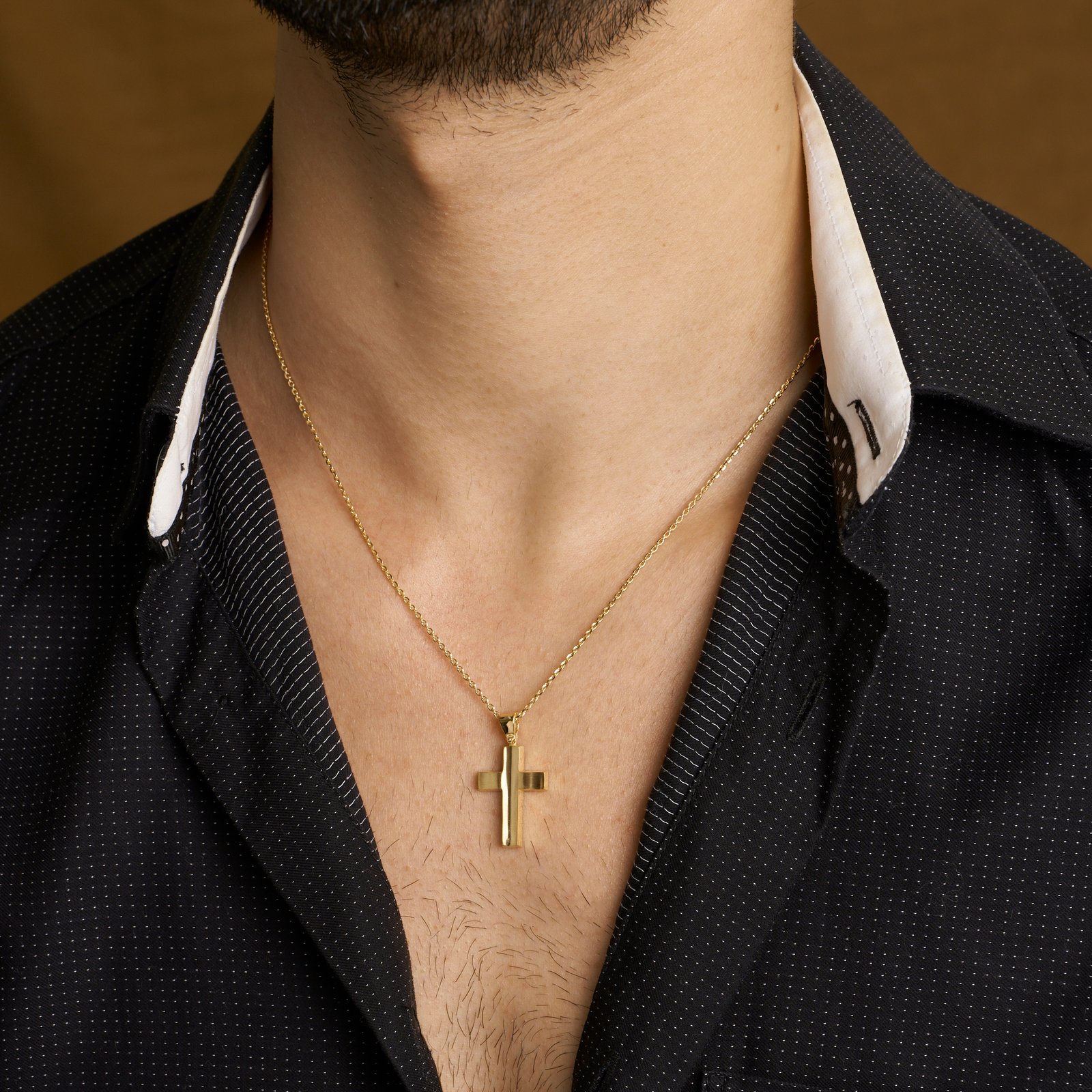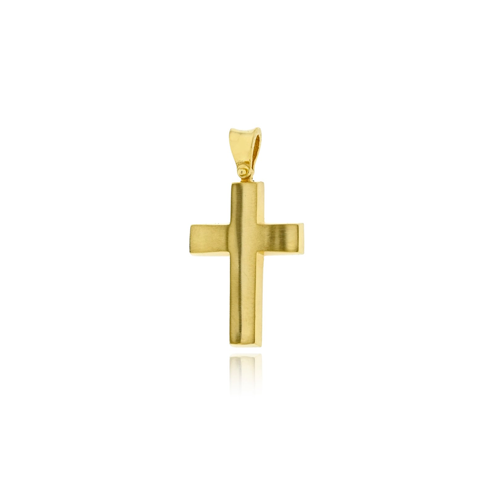 Ένας κλασικός σταυρός βάπτισης για αγόρι κατασκευασμένος από κίτρινο χρυσό 14 καρατίων, που συνδυάζει δύο υφές φινιρίσματος, σαγρέ και λουστράτη. Η μπροστινή όψη είναι σχεδιασμένη με σαγρέ φινίρισμα, προσθέτοντας υφή και βάθος στον σταυρό, ενώ οι λεπτομέρειες του σχεδίου αναδεικνύονται με το λουστράτο φινίρισμα. Ένας σταυρός που αποπνέει αισθητική και πνευματικότητα, ιδανικός για τη βάπτιση ενός αγοριού.