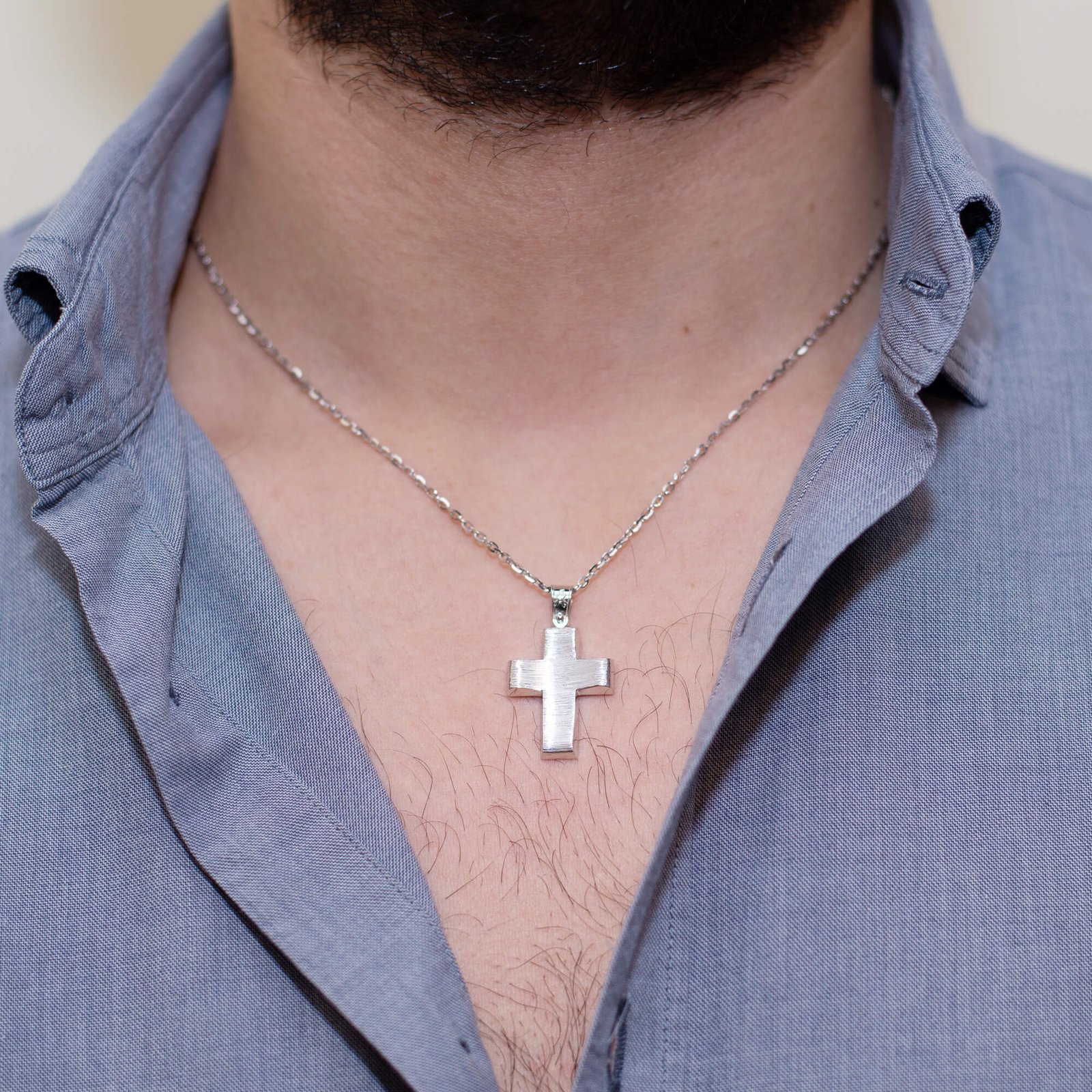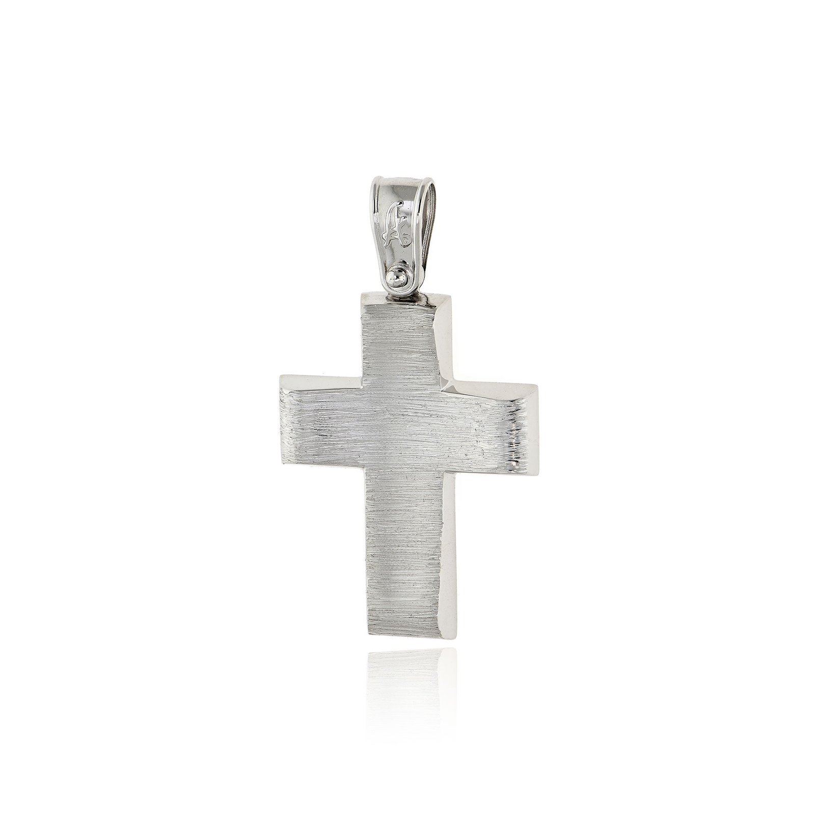 Αυτός ο σταυρός είναι ιδανικός για βάφτιση αγοριού αλλά και για δώρο στον άνδρα που εκτιμά τη διακριτική κομψότητα. Κατασκευασμένος από λευκό χρυσό 14 καρατίων σε μοντέρνο σχέδιο με σαγρέ φινίρισμα, θα φορεθεί εξίσου ωραία με αλυσίδα ή με κορδόνι.