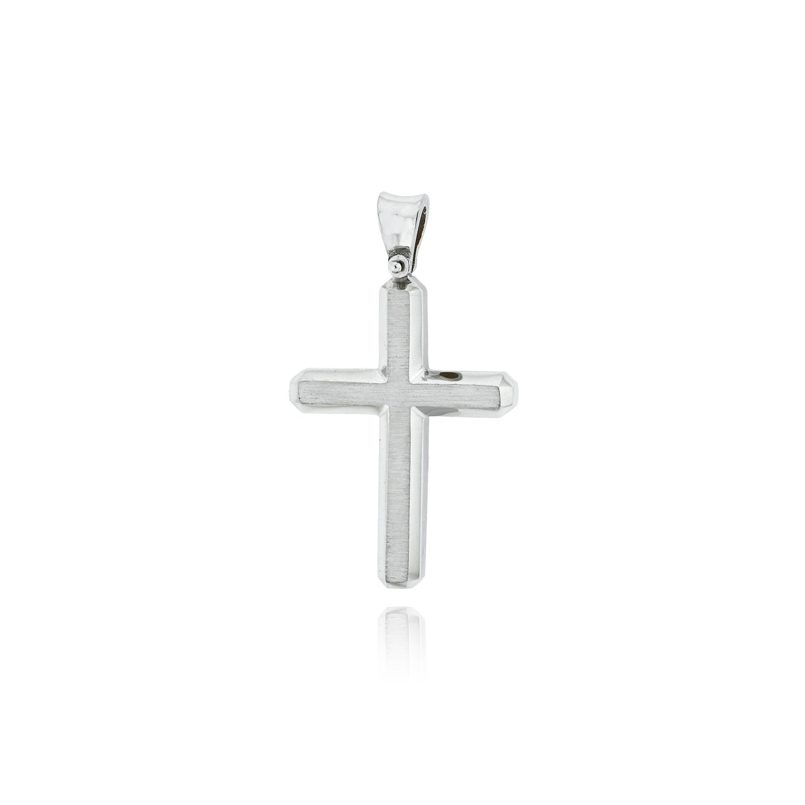 Ένας εξαιρετικά κομψός σταυρός βάπτισης για αγόρι, κατασκευασμένος από λευκό χρυσό 14 καρατίων, με έναν πρωτότυπο και μοντέρνο σχεδιασμό. Οι στρογγυλεμένες άκρες του σταυρού προσδίδουν μια αίσθηση ομορφιάς και ευγένειας στο κόσμημα, ενώ ο λευκός χρυσός προσθέτει λάμψη και φινέτσα. Αυτός ο σταυρός είναι ιδανικός για να τον φορέσει ένα αγόρι στη σημαντική τελετή της βάπτισής του.